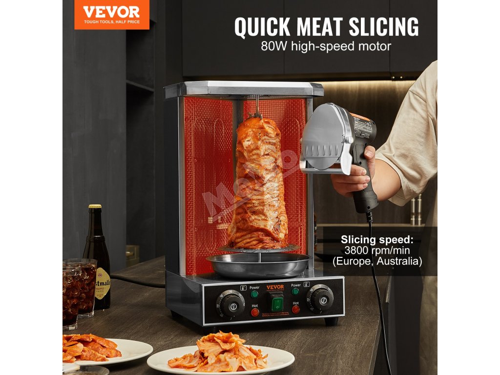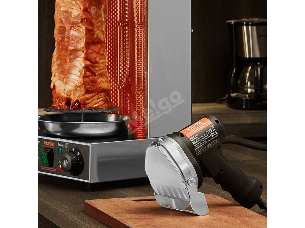 Nôž na šawarmu je vybavený účinným 80W motorom na vysokorýchlostné krájanie mäsa, ktorý pozdvihne vašu produktivitu na novú úroveň a ušetrí vám drahocenný čas na prípravu jedla.