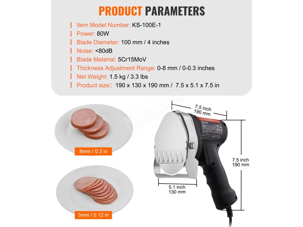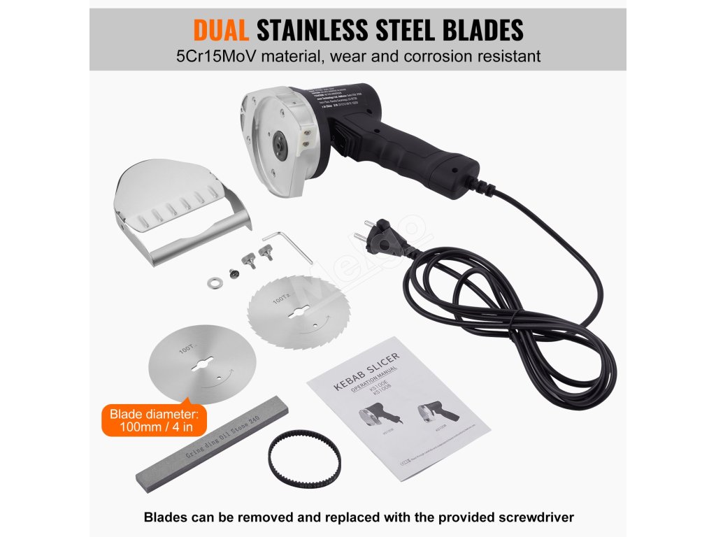 Nôž na šavarmu 80 W, 2 čepele, Ø4"/100 mm, nastaviteľná hrúbka 0–8 mm