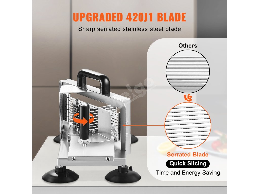 Tento krájač na paradajky je vybavený čepeľami z nehrdzavejúcej ocele 420J1 a bez námahy krája rôzne druhy zeleniny. Vďaka ergonomickému a pracovne úspornému dizajnu výrazne zvyšuje vašu produktivitu a šetrí drahocenný čas na prípravu jedla.