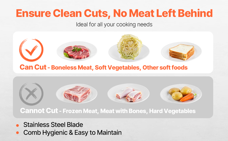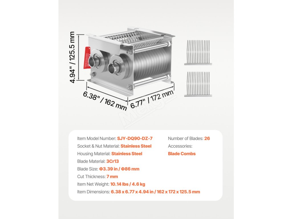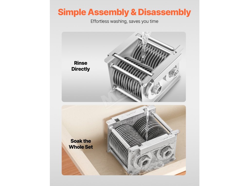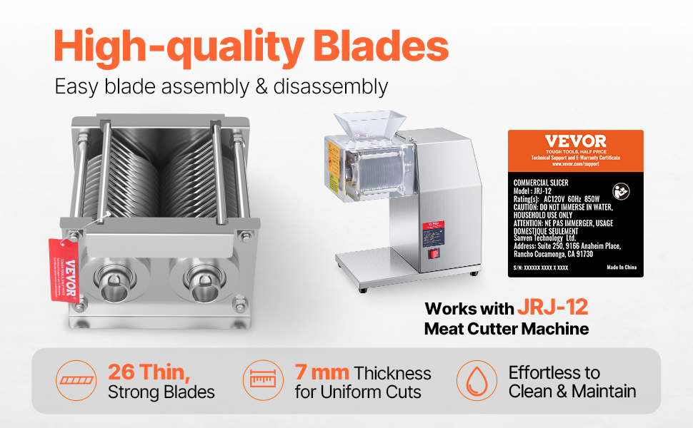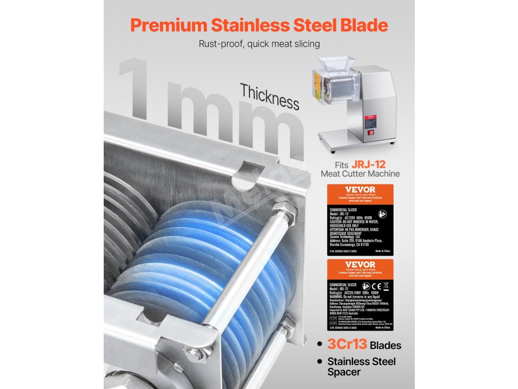 Táto súprava nožov pre komerčný krájač mäsa je vyrobená z vysokokvalitnej nehrdzavejúcej ocele, odoláva korózii a udržiava hladký chod po celé roky. Vďaka kompaktnému dizajnu a nízkej hlučnosti je skvelou voľbou do každej kuchyne.