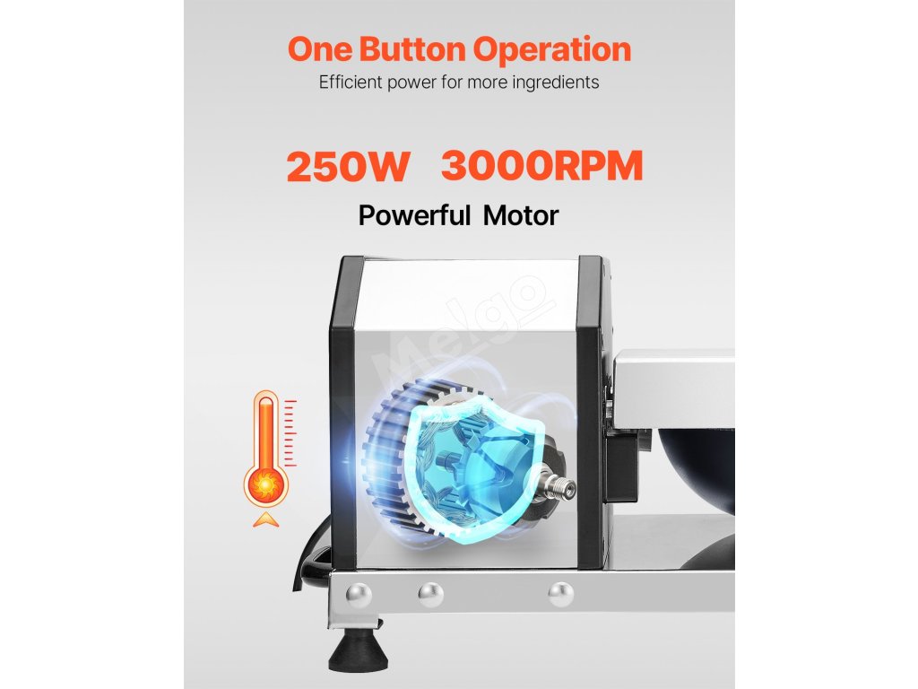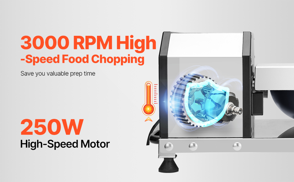 Náš kuchynský robot je vybavený stabilným 250W motorom a rýchlosťou 3000 otáčok za minútu, rýchlo naseká potraviny a pomôže vám pripraviť ingrediencie v krátkom čase.