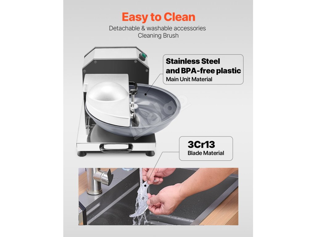 Vďaka nášmu odolnému a ostrému zakrivenému nožu v tvare písmena S a priemernej rýchlosti otáčania 3000 ot/min môžete rýchlo nasekať suroviny, čím ušetríte drahocenný čas na prípravu. Rozlúčte sa so zdĺhavou prípravou jedla a pozdravte pohodlie.