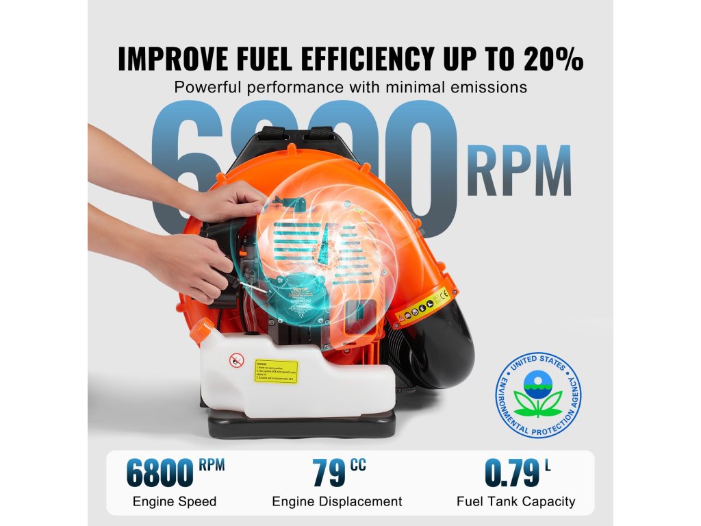 Batohový benzínový fúkač lístia 79CC 2-cycle 3L nádrž 930CFM 184MPH