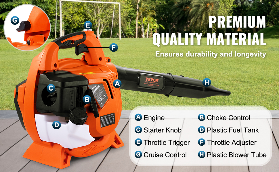 Tento plynový fúkač lístia je vyrobený z kovu a vysokokvalitného plastu a je navrhnutý tak, aby odolával opotrebovaniu a zabezpečil dlhodobý výkon.