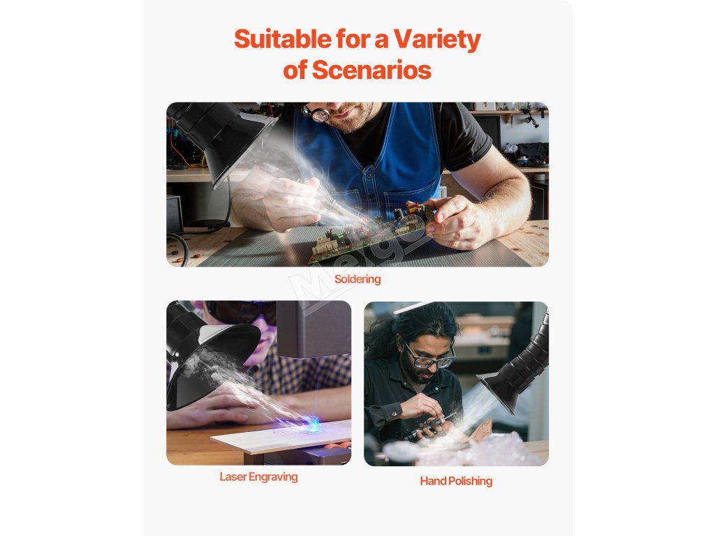 Nechajte náš odsávač spájkovacích dymov zlepšiť vaše skúsenosti s spájkovaním. Vďaka výkonnému 85W bezkefkovému motoru a silnému prietoku vzduchu 200 m³/h dokáže účinne odstrániť dym a škodlivé častice. vďaka 3-stupňovému filtračnému systému a 3-stupňovému nastaveniu rýchlosti zostane váš pracovný priestor čistý, bezpečný a zdravý.
