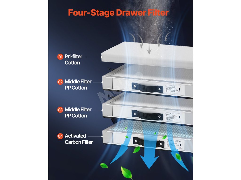 Odsávač pár ponúka veľkú plochu, ktorá účinne zachytáva a pohlcuje dym, čím zabezpečuje, že váš pracovný priestor zostane čistý a bez dymu.