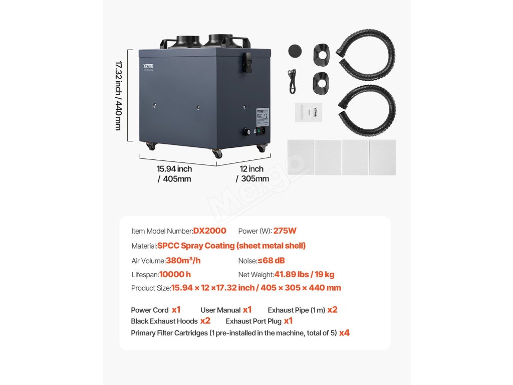 Odsávač výparov pri pájaní 275 W, 380 m³/h, 4-stupňové filtre