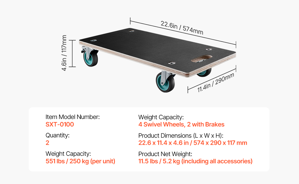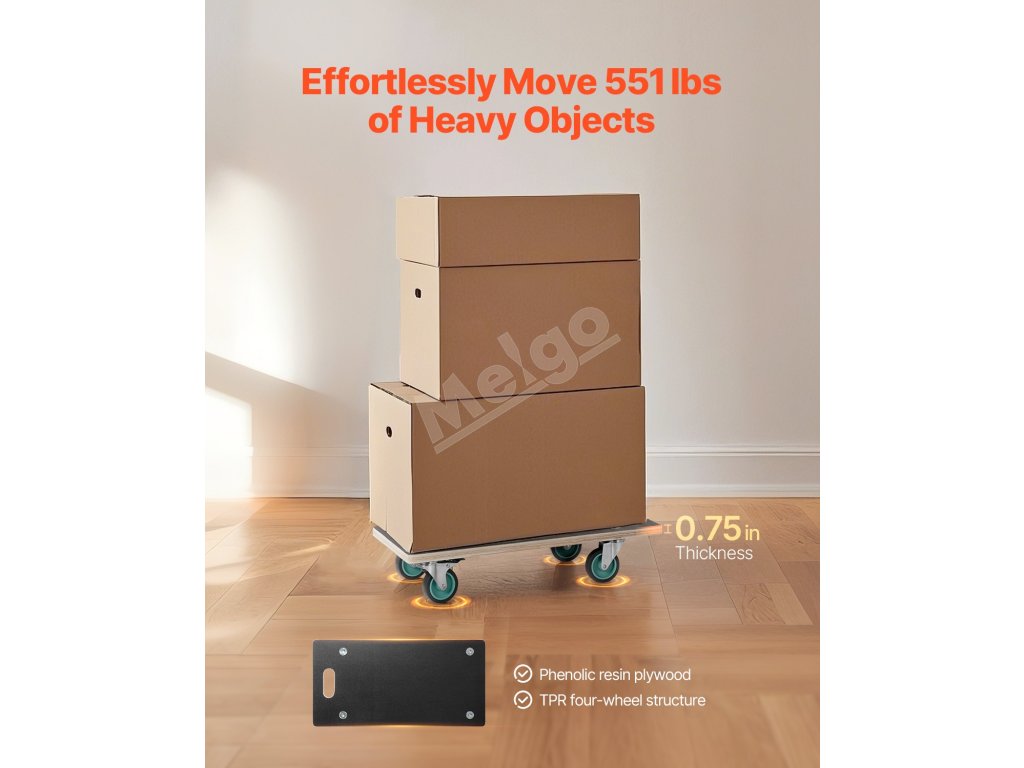 Sada 2 plochých vozíkov na nábytok, 551 lbs nosnosť, 4 tiché kolesá