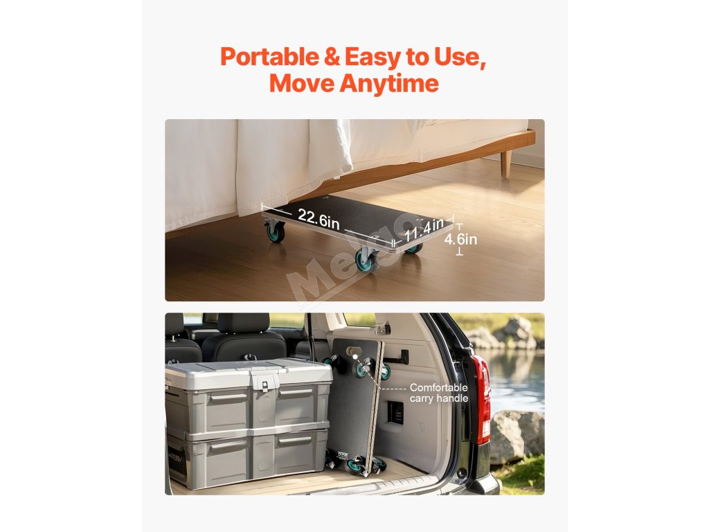Kompaktné a pohodlné! Náš pojazdný vozík na nábytok je ľahký a prenosný, takže ho môžete prenášať kamkoľvek. Zmestí sa dokonca aj do stiesnených priestorov a je pripravený pomôcť pri sťahovaní, upratovaní a ďalších činnostiach - kedykoľvek to budete potrebovať!