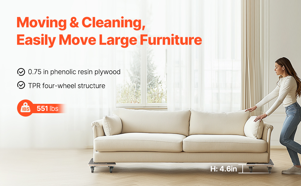 Potrebujete premiestniť ťažký nábytok? Tento plochý vozík na nábytok je vybavený zosilnenými panelmi a robustnou konštrukciou so 4 kolieskami, ktorá zaručuje, že vaše predmety zostanú počas prepravy v bezpečí. Žiadne ohýbanie ani praskanie - len hladká plavba!