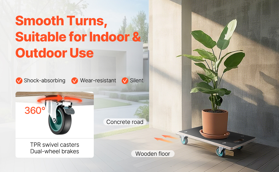 Rozlúčte sa s trhavými pohybmi! Otočné kolieska TPR nášho vozíka na nábytok sa bez námahy kĺžu po betóne, dreve alebo akomkoľvek inom povrchu. A vďaka dvojitému brzdovému systému ho môžete zastaviť, kdekoľvek potrebujete, aby ste mali pocit väčšieho bezpečia.