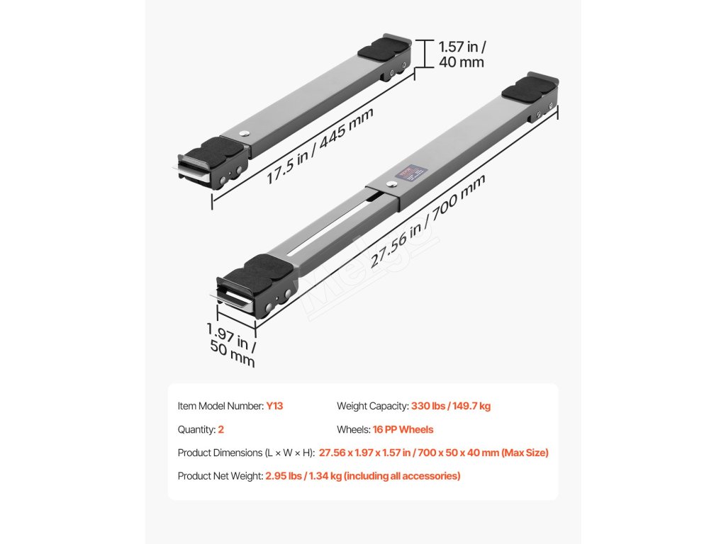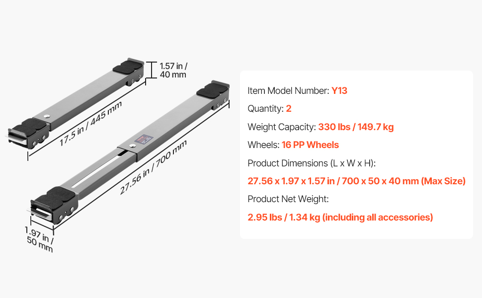 Vďaka rozsahu od 17,5 do 27,6 palca sa valčeky na spotrebiče prispôsobia rôznym spotrebičom, takže sú ideálne pre rôzne veľkosti a tvary.