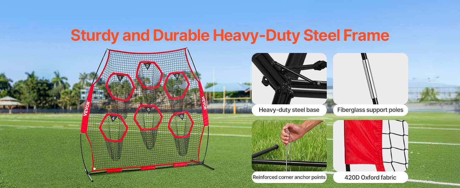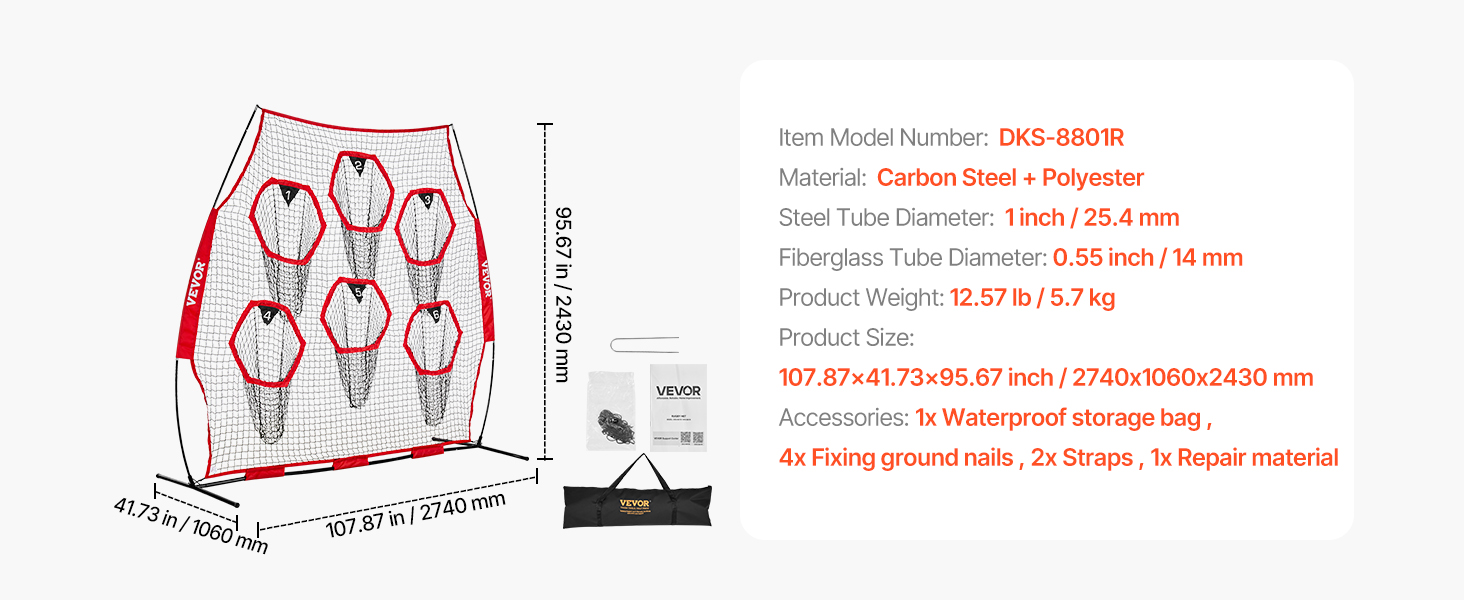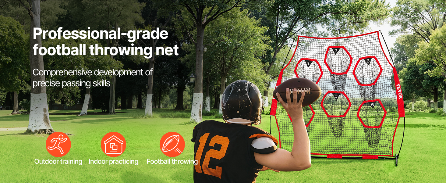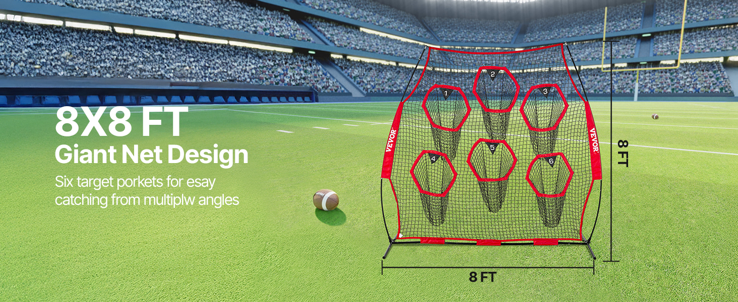 Tréningová futbalová sieť na hádzanie na terče je vybavená veľkou sieťou s rozmermi 8 × 8 stôp a 5 vreckami na terče, ktoré vám zabezpečia možnosť hádzať loptu z rôznych smerov a vzdialeností.