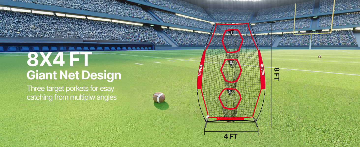 Tréningová futbalová sieť na hádzanie na terče je vybavená veľkou sieťou s rozmermi 8 × 4 palce a 3 vreckami na terče, ktoré vám zabezpečia možnosť hádzať loptu z rôznych smerov a vzdialeností.