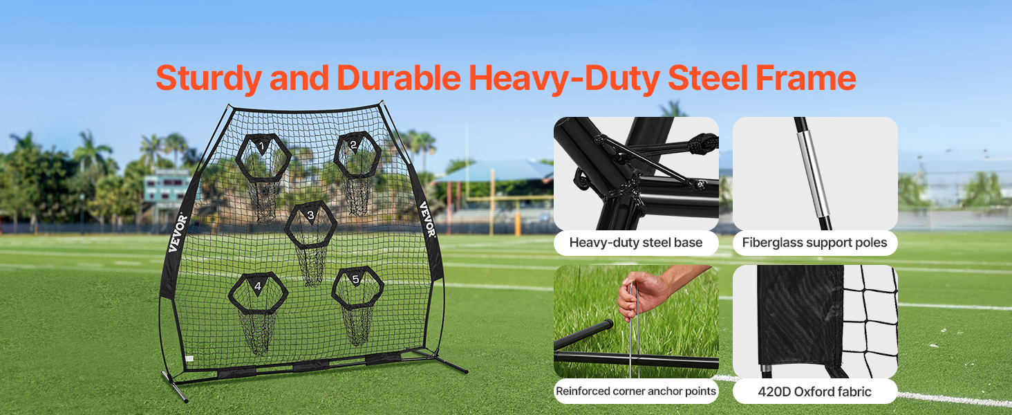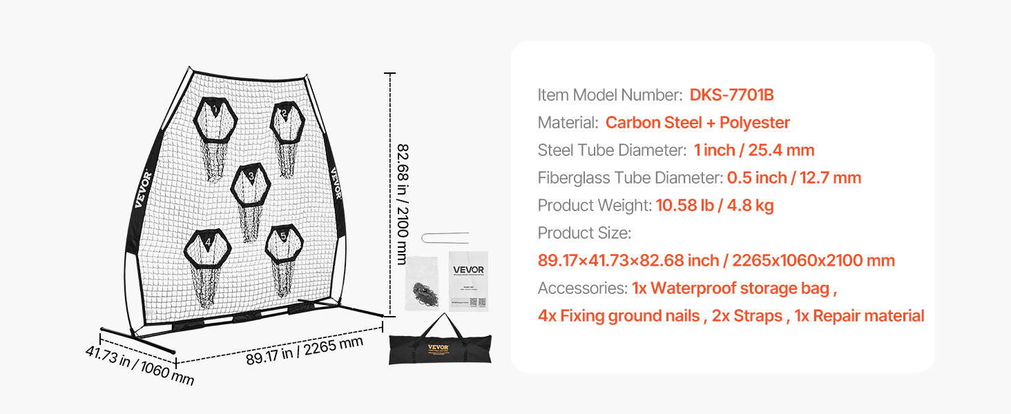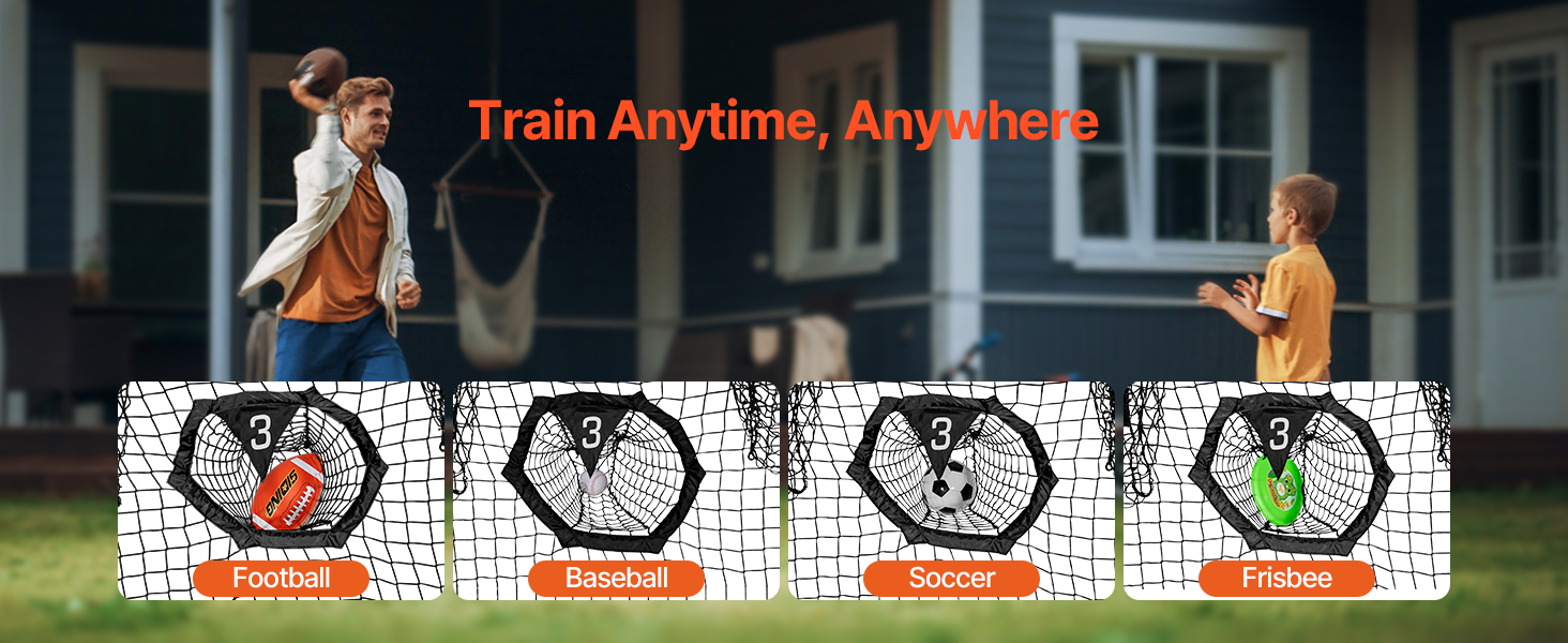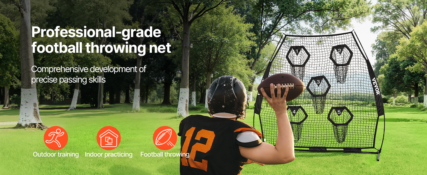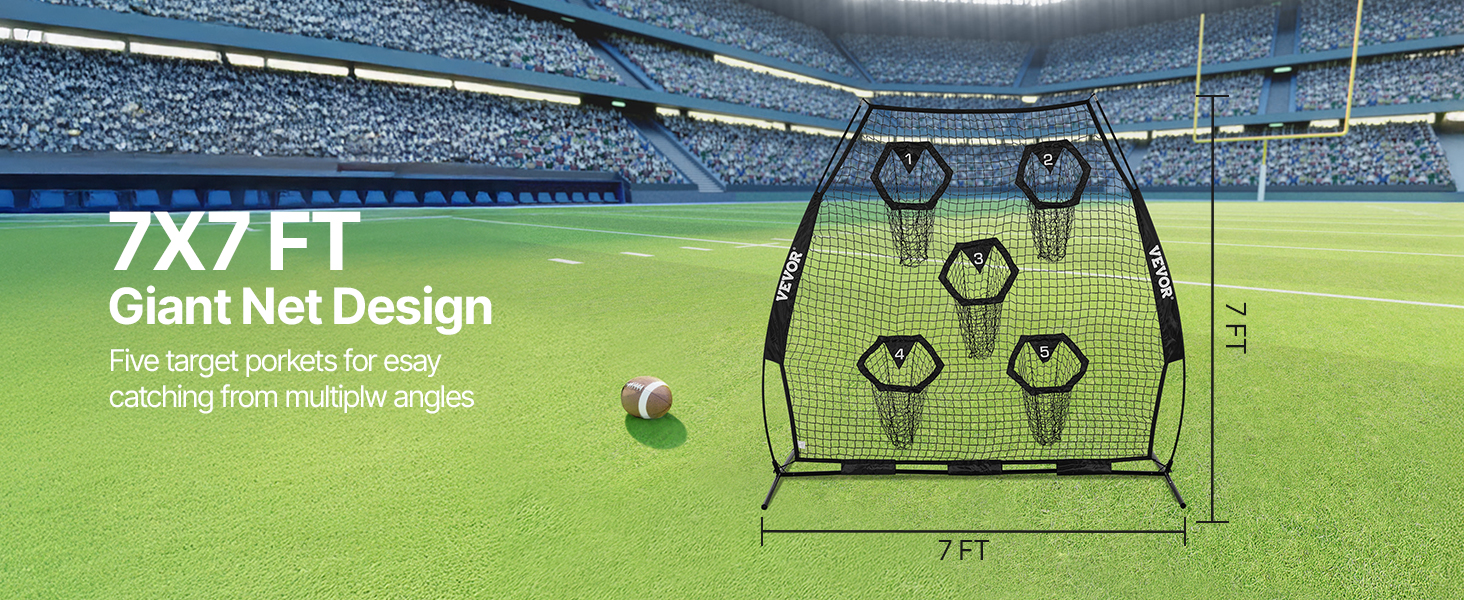 Tréningová futbalová sieť na hádzanie na terče je vybavená veľkou sieťou s rozmermi 7 × 7 stôp a 5 vreckami na terče, ktoré vám zabezpečia možnosť hádzať loptu z rôznych smerov a vzdialeností.