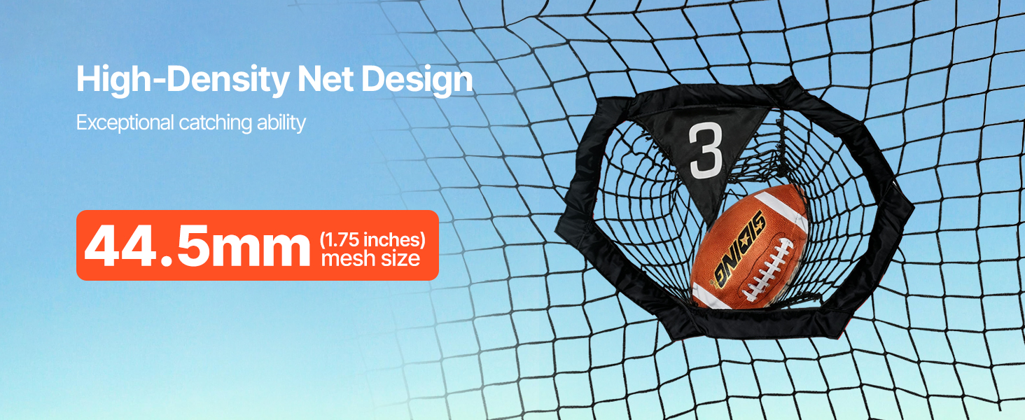 Táto futbalová hádzacia sieť s konštrukciou s vysokou hustotou 44,5 mm veľkosti otvorov zabezpečuje kompatibilitu s cvičeniami na prihrávanie.