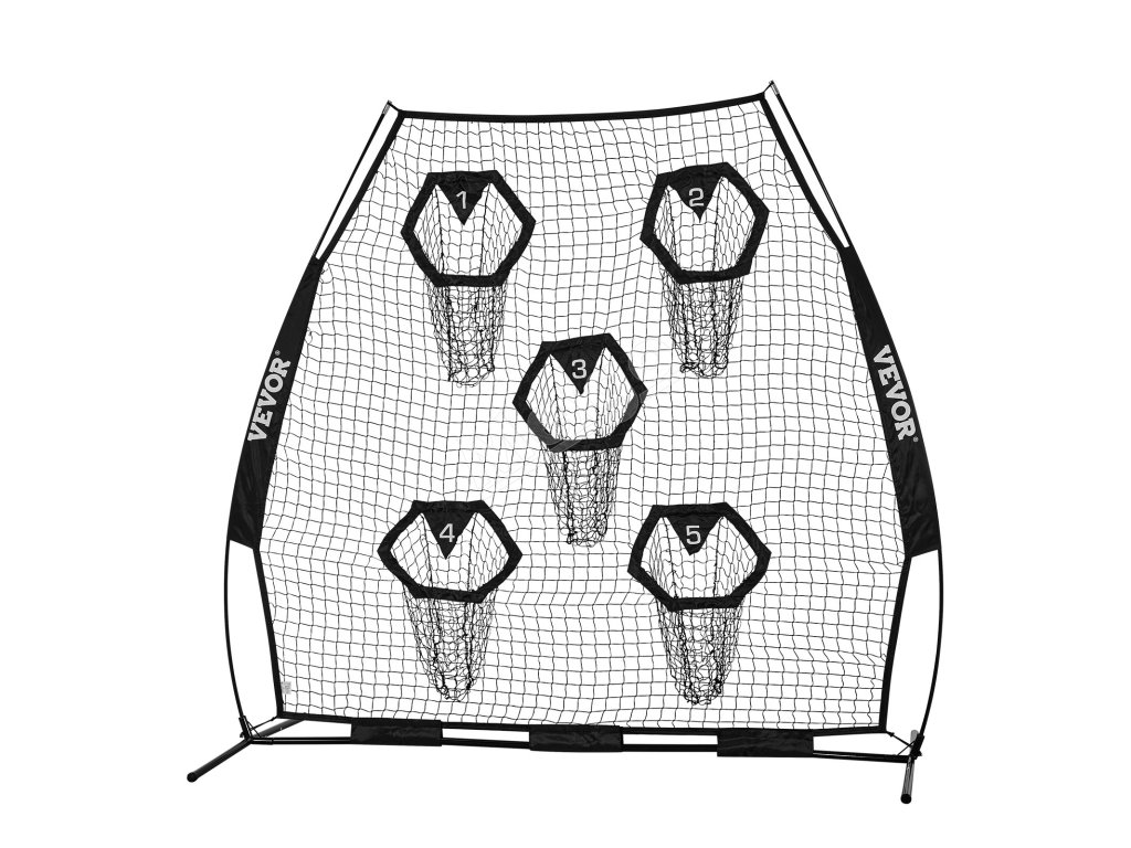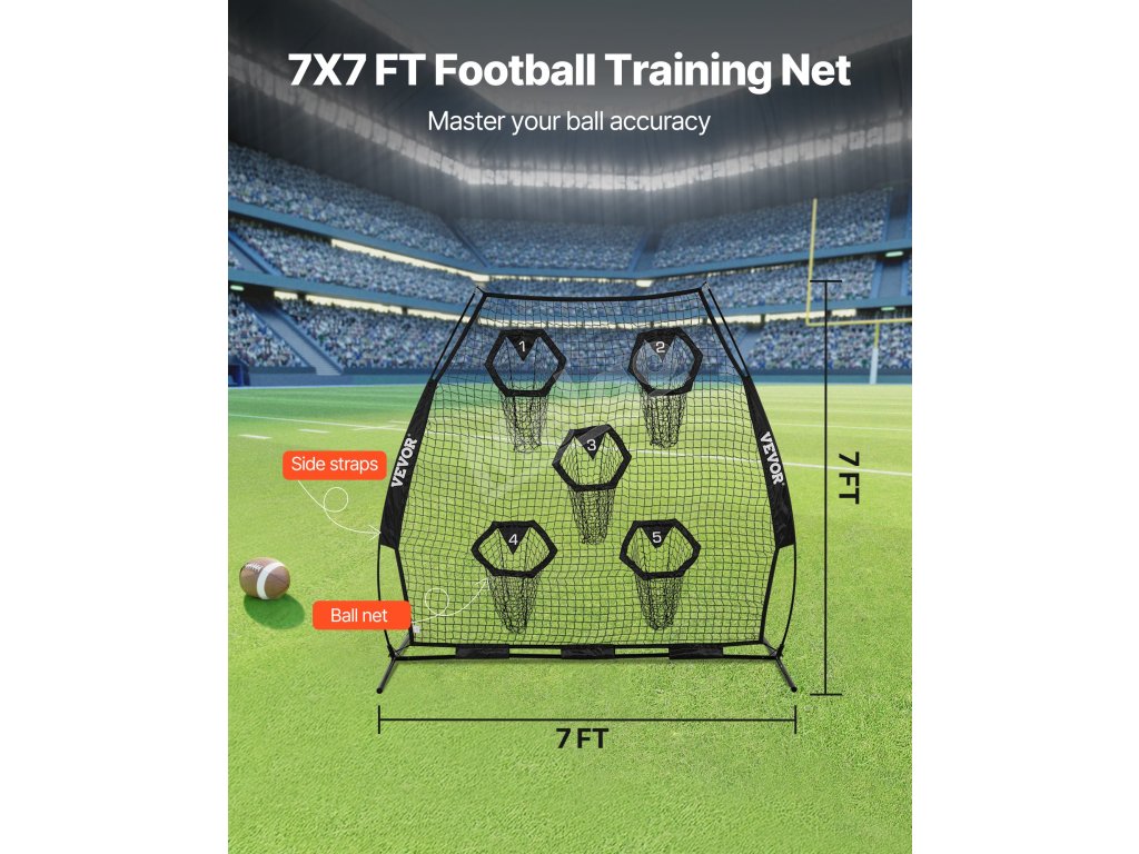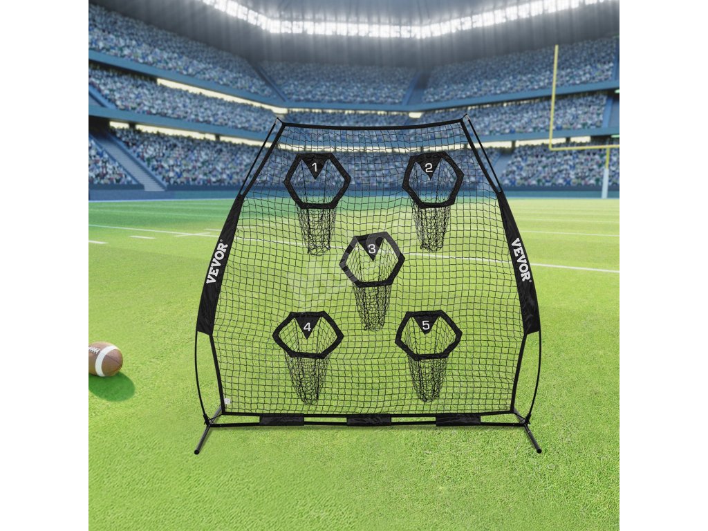 Tréningová futbalová sieť na hádzanie na terče je vybavená veľkou sieťou s rozmermi 7 × 7 stôp a 5 vreckami na terče, ktoré vám zabezpečia možnosť hádzať loptu z rôznych smerov a vzdialeností.