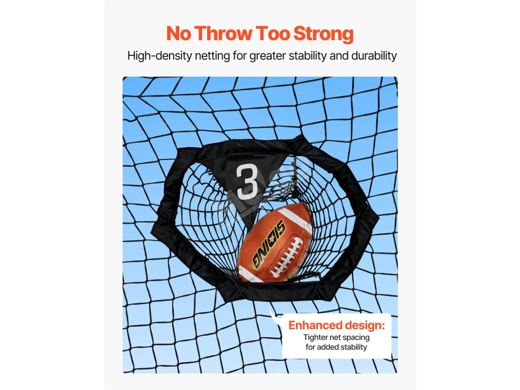 Táto futbalová hádzacia sieť s konštrukciou s vysokou hustotou 44,5 mm veľkosti otvorov zabezpečuje kompatibilitu s cvičeniami na prihrávanie.