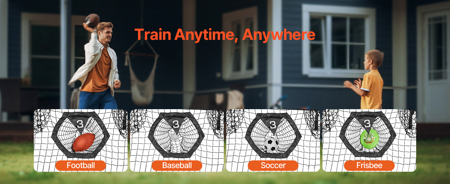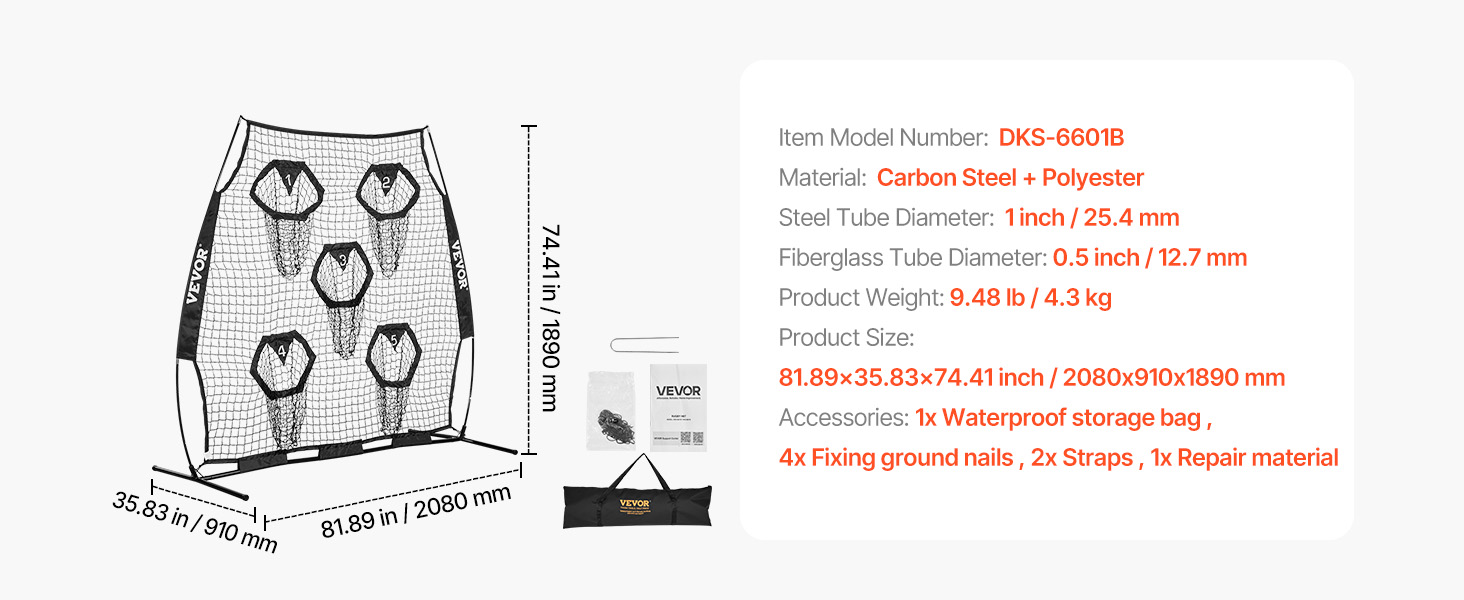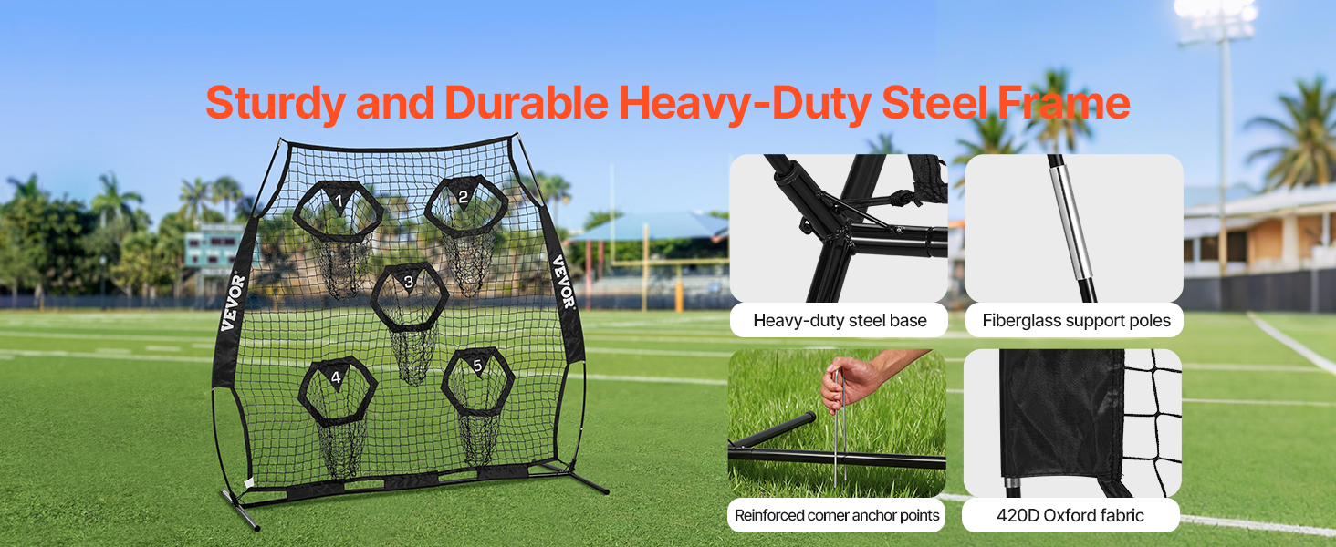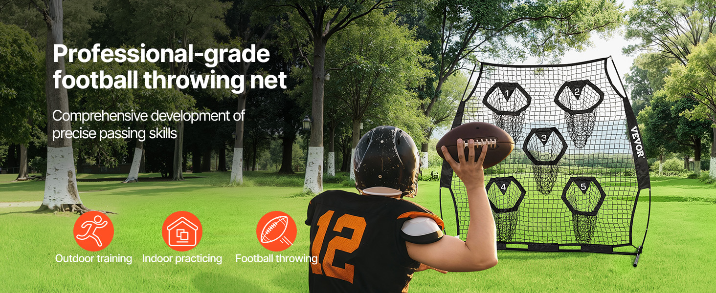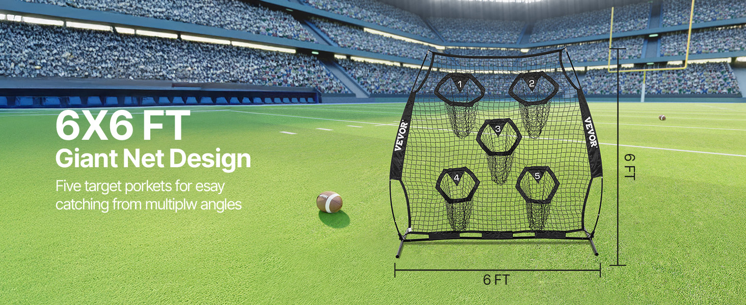 Tréningová futbalová sieť na hádzanie na terče je vybavená veľkou sieťou s rozmermi 6 × 6 stôp a 5 terčovými vreckami, ktoré vám zabezpečia možnosť hádzať loptu z rôznych smerov a vzdialeností.
