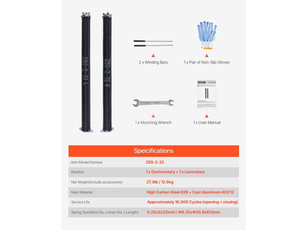 Sada 2 torzných pružín do garážových dverí 0.25×2×32 in, 16000 cyklov
