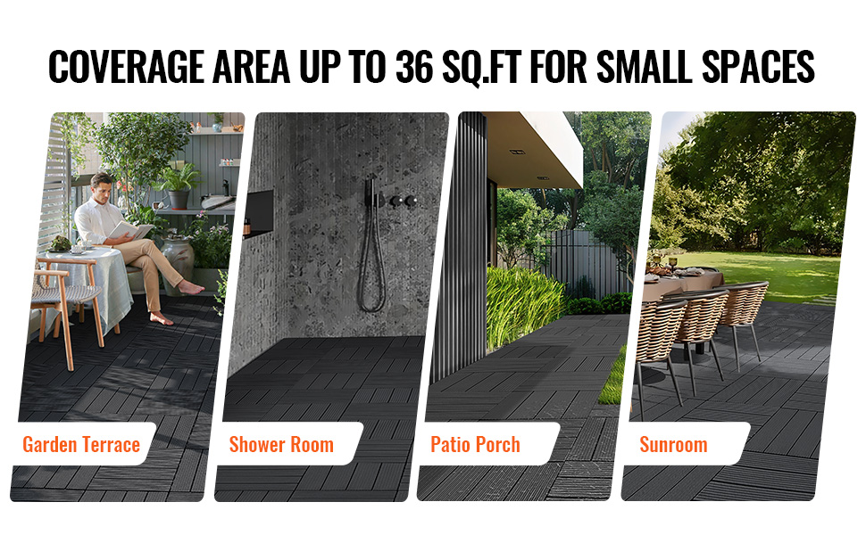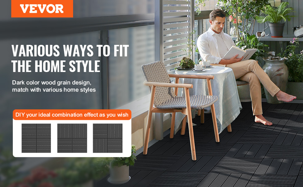 Dlaždice na terasu 36 ks 11.6"×11.6" 36 sq. ft plastové tmavosivé