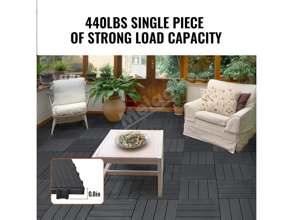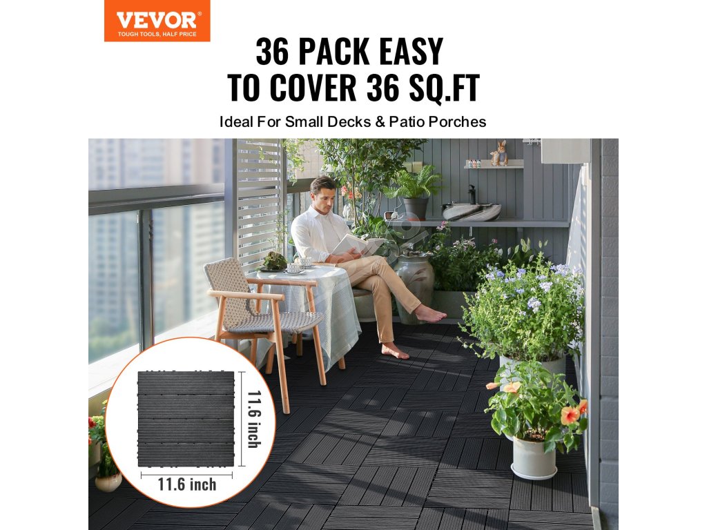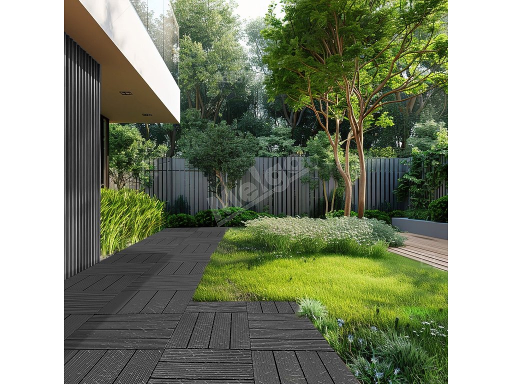 Dlaždice na terasu 36 ks 11.6"×11.6" 36 sq. ft plastové tmavosivé