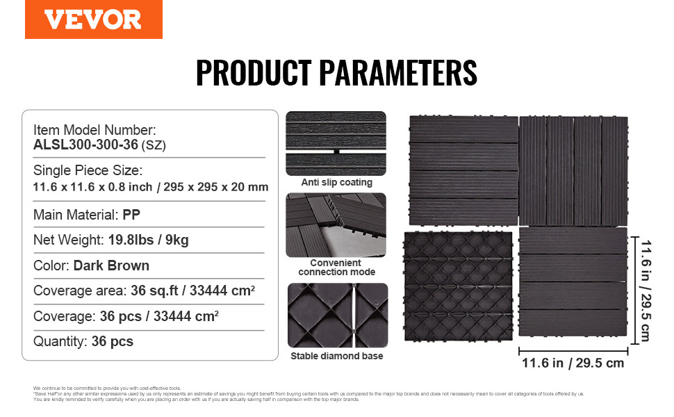 | Veľkosť jedného kusu | 11.8 x 11,8 x 0,8 palca / 300 x 300 x 20 mm |