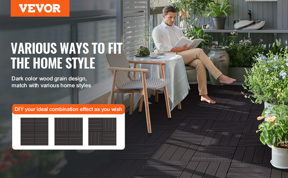 Zámkové dlaždice na terasu 36 ks 11.6"×11.6" 36 sq.ft plast tmavohnedé