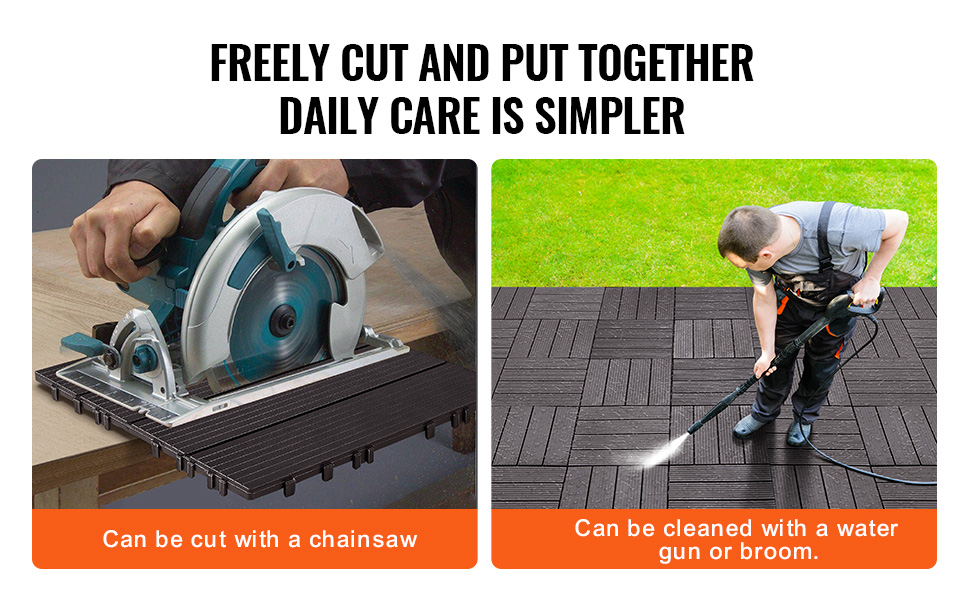 Na rýchlu inštaláciu stačí dlaždice jednoducho zacvaknúť k sebe. Na rezanie a opätovnú montáž môžete použiť aj elektrickú pílu. Pravidelná údržba je taká jednoduchá ako ich opláchnutie.