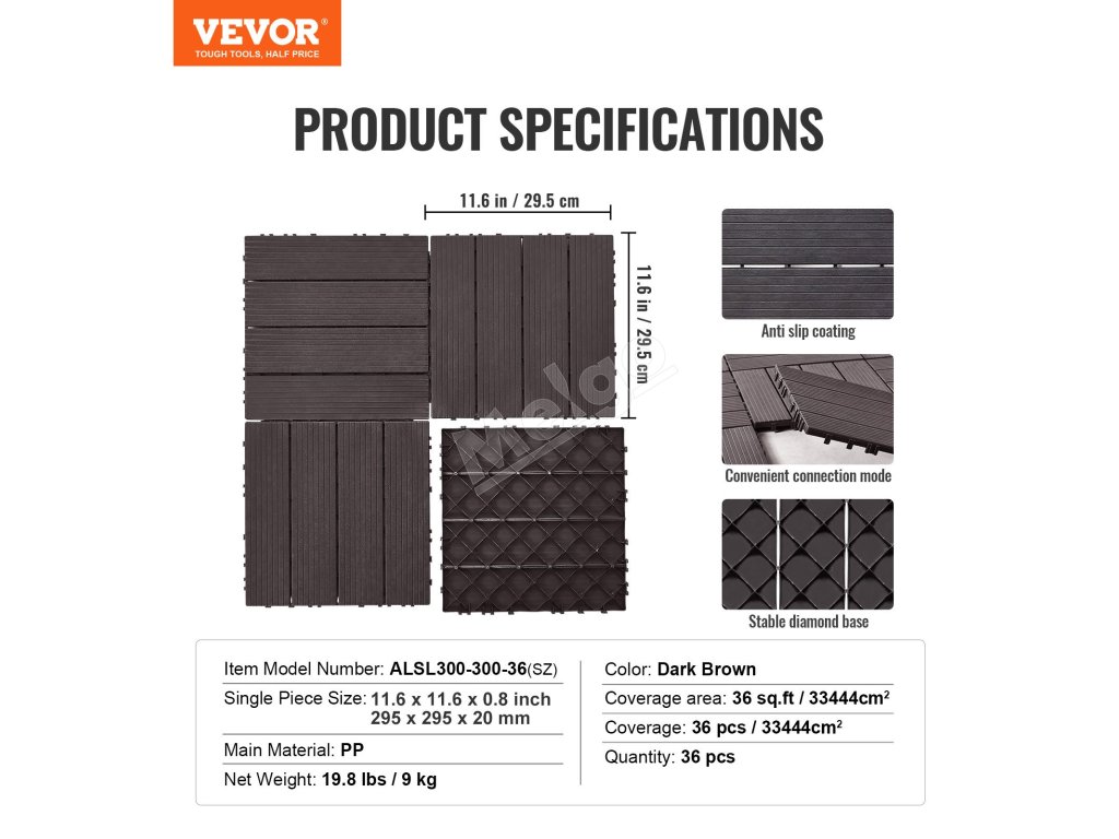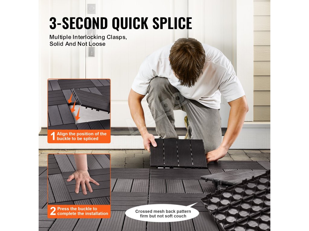 Zámkové dlaždice na terasu 36 ks 11.6"×11.6" 36 sq.ft plast tmavohnedé