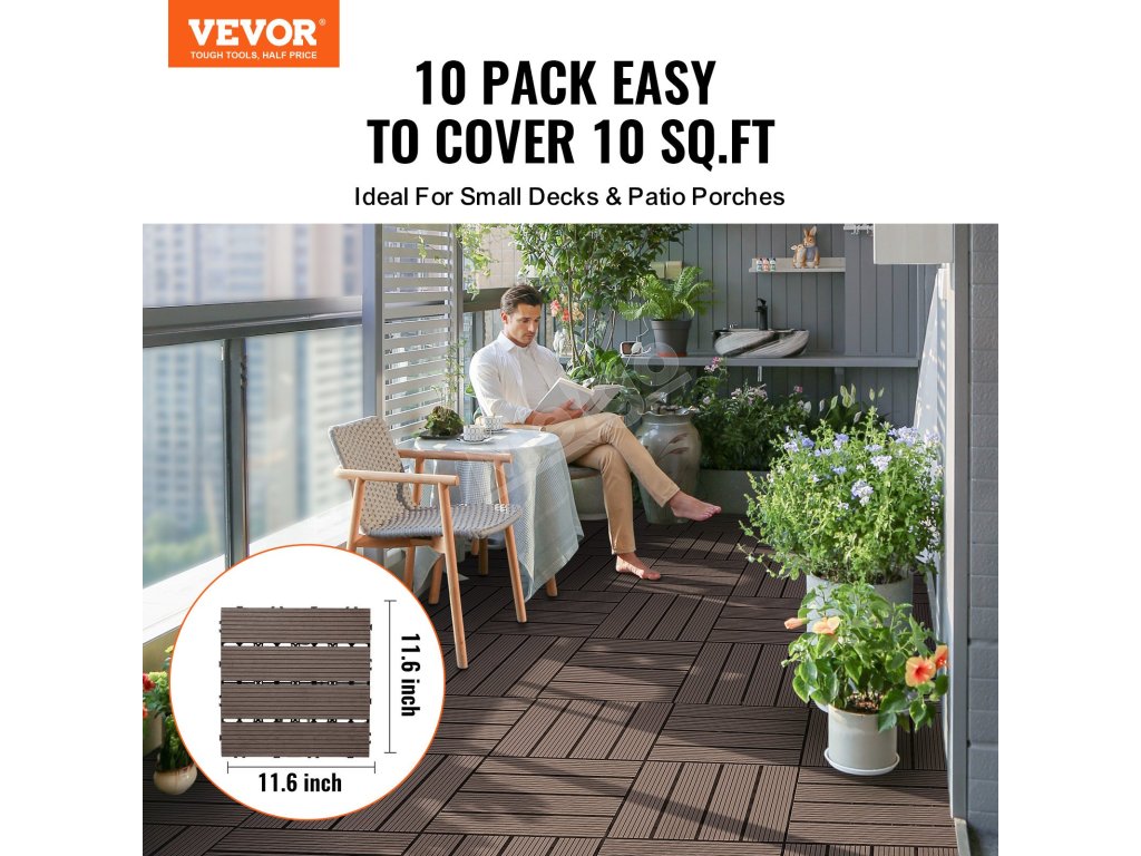 Zámkové terasové dielce 10 ks 12×12" plastový vzhľad dreva tmavohnedé