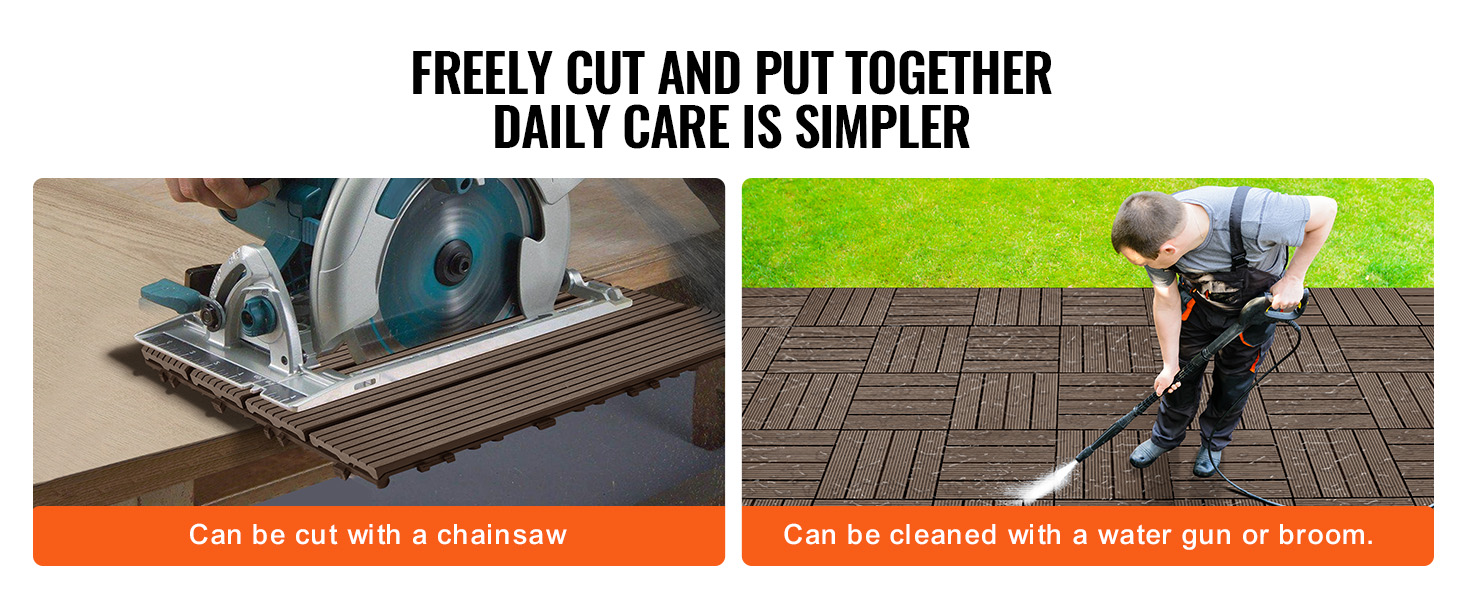 Na rýchlu inštaláciu stačí dlaždice jednoducho zacvaknúť k sebe. Na rezanie a opätovnú montáž môžete použiť aj elektrickú pílu. Pravidelná údržba je taká jednoduchá ako ich opláchnutie.