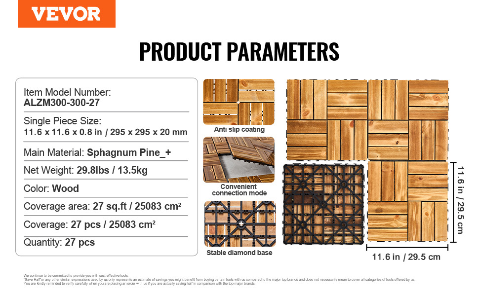 | Veľkosť jedného kusu | 11.8 x 11,8 x 0,8 palca / 300 x 300 x 20 mm |