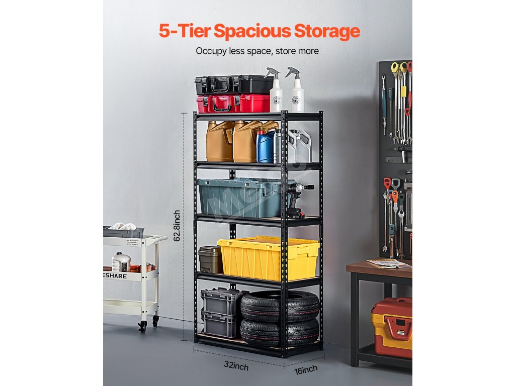 Kovový regál 5 políc nastaviteľný 2000 lbs 16" d × 32" w × 62.8" h
