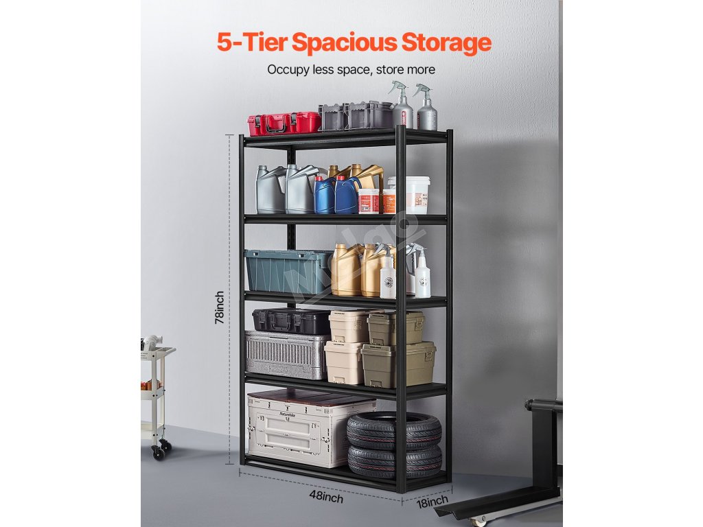 Kovový regál 5 políc nosnosť 3000 lbs nastaviteľný 18"×48"×78"