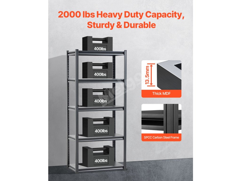Táto úložná policová jednotka je silou s nosnosťou 2000 libier, ktorá ľahko zvládne všetky vaše potreby na uskladnenie. Či už ide o náradie alebo rôzne predmety, všetko zostane usporiadané a upratané.