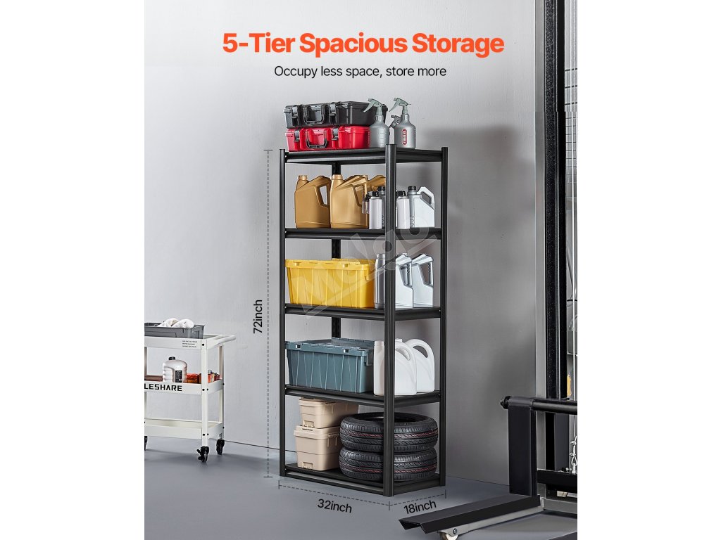 Policový regál oceľový 5 políc, nosnosť 2000 lbs, 18" × 32" × 72"