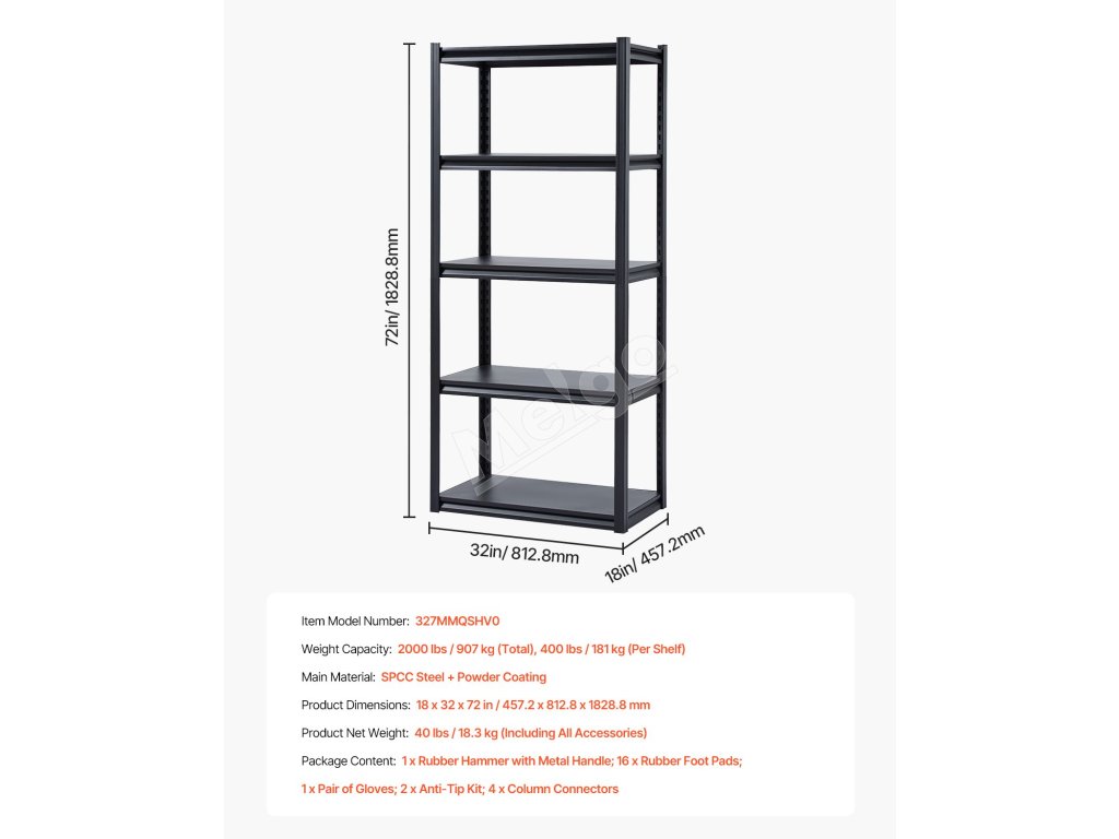Táto úložná policová jednotka má nosnosť 2000 libier a ľahko si poradí so všetkými vašimi skladovacími potrebami. Či už ide o náradie alebo rôzne predmety, všetko zostane usporiadané a upratané.