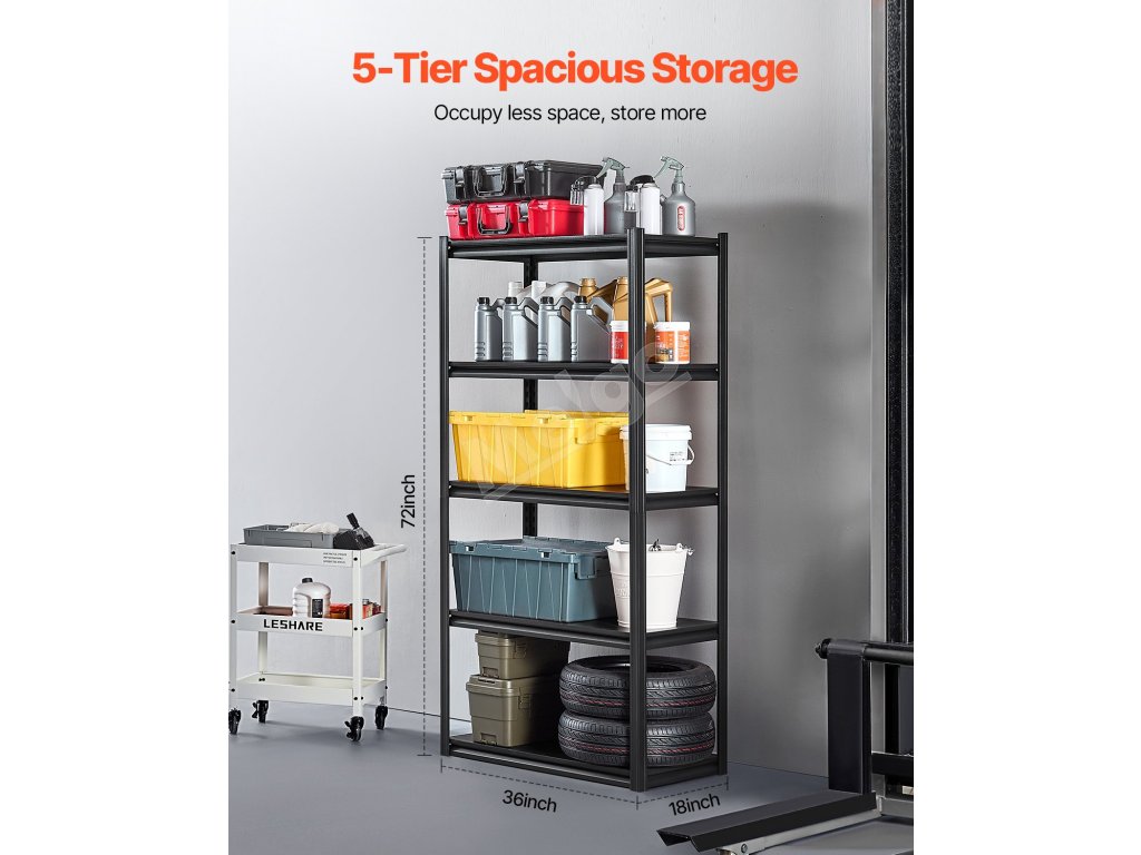 Regál 5 políc nosnosť 2000 lbs nastaviteľný, 18" D × 36" W × 72" H