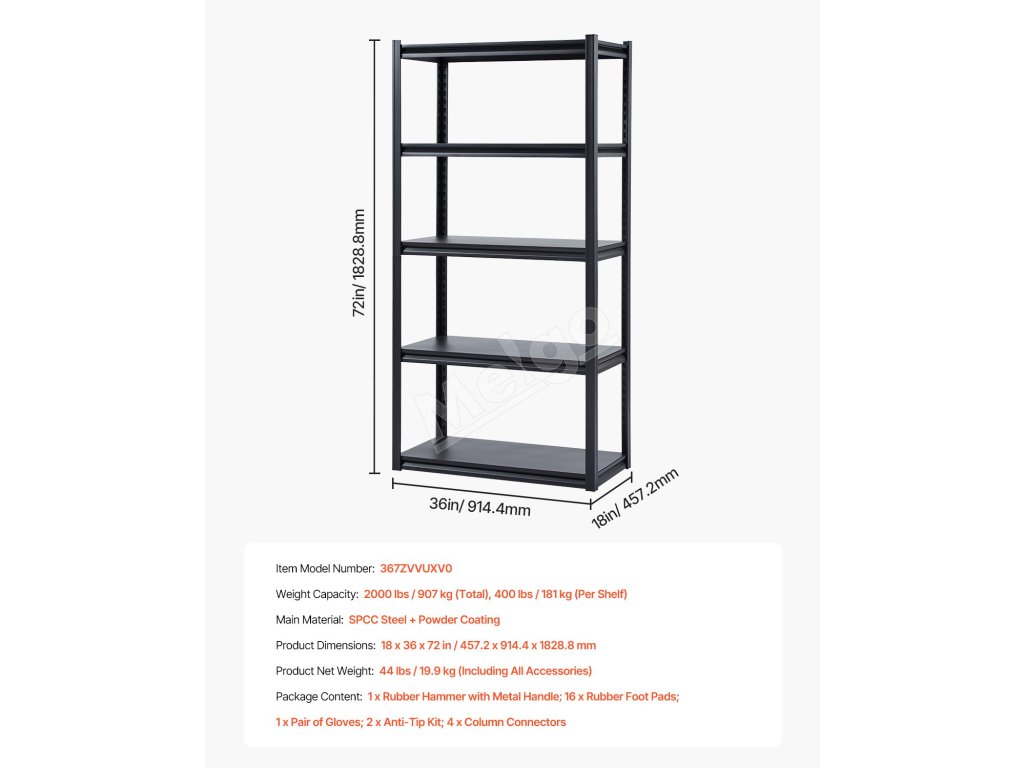 Táto úložná policová jednotka je silou s nosnosťou 2000 libier, ktorá ľahko zvládne všetky vaše potreby na uskladnenie. Či už ide o náradie alebo rôzne predmety, všetko zostane usporiadané a upratané.