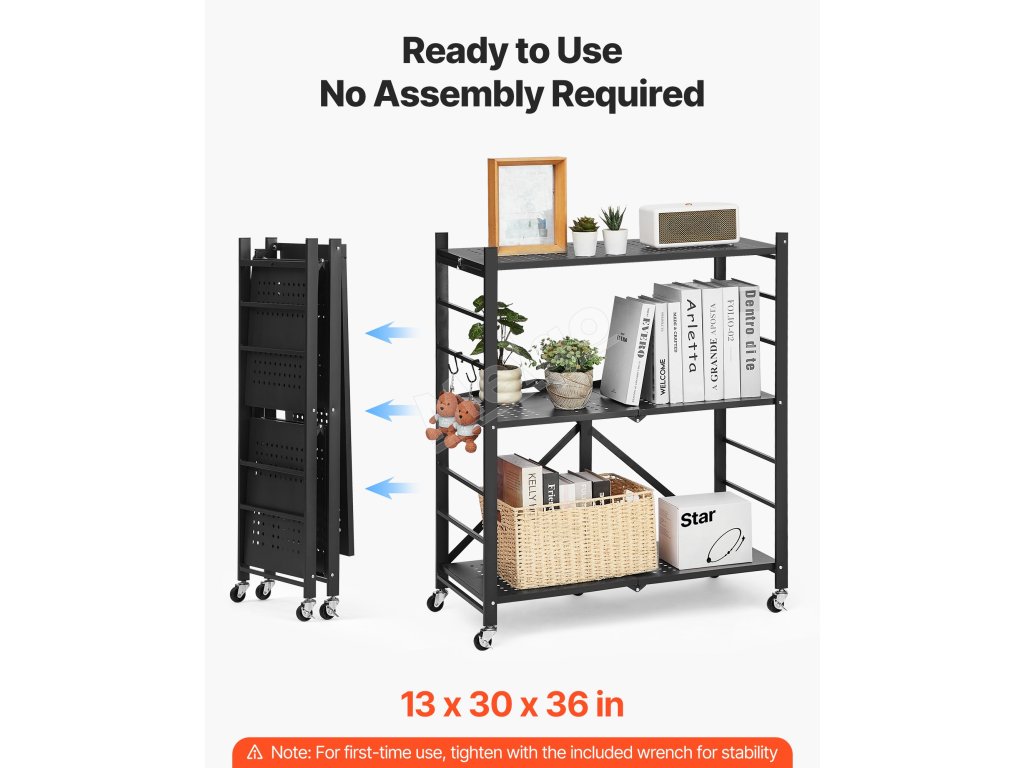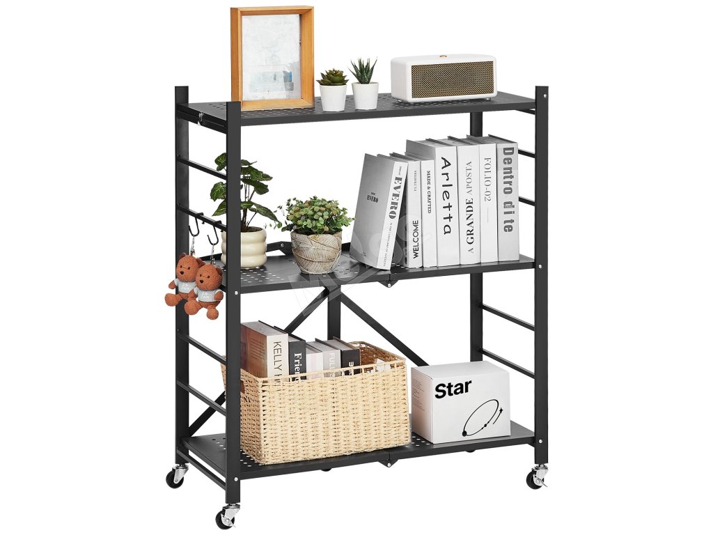 Skladací regál 3 police, 30W×13D×36H inch, 5 koliesok, 4 háčiky