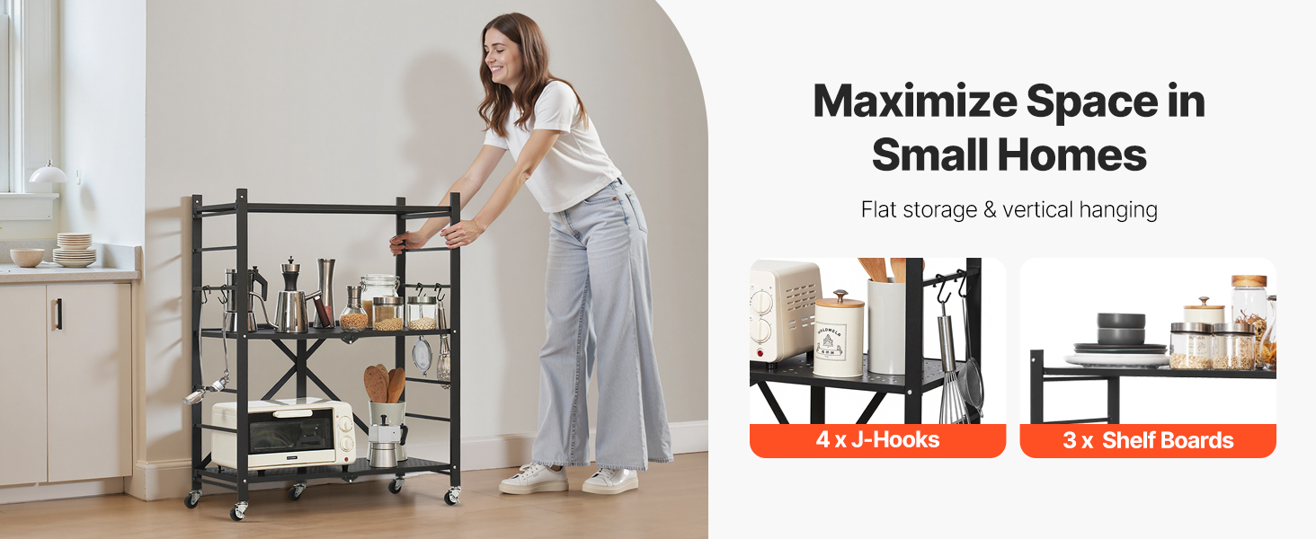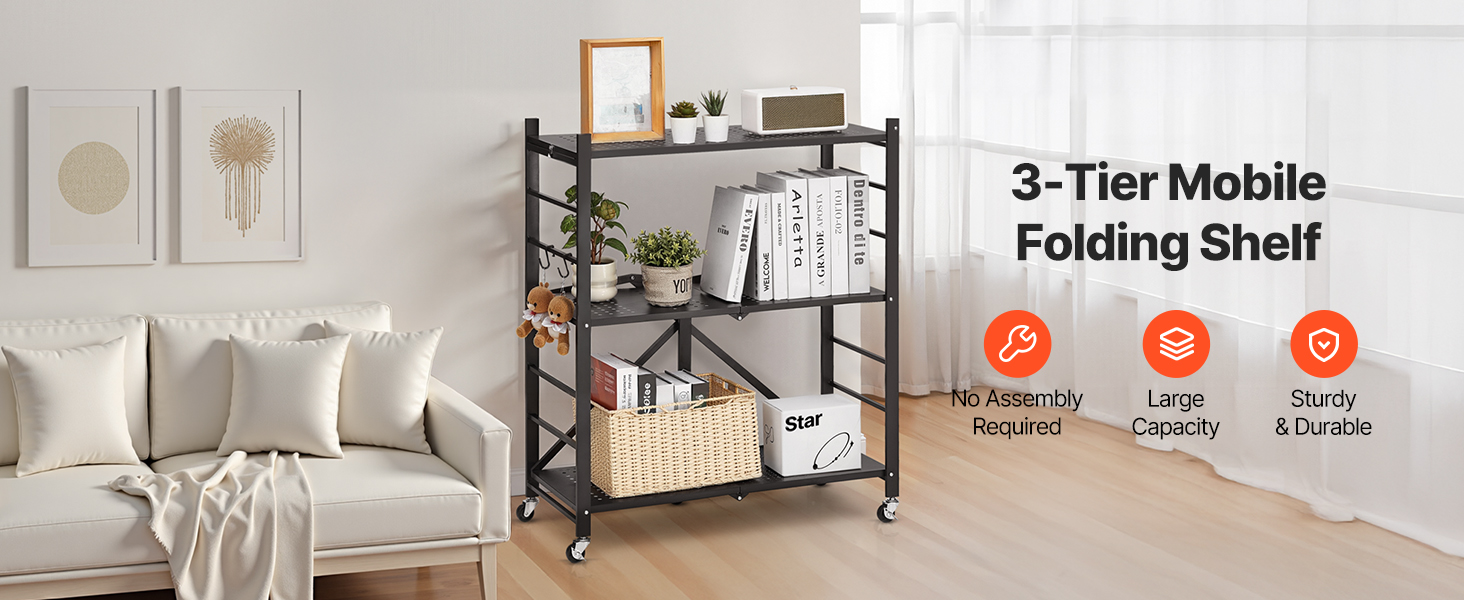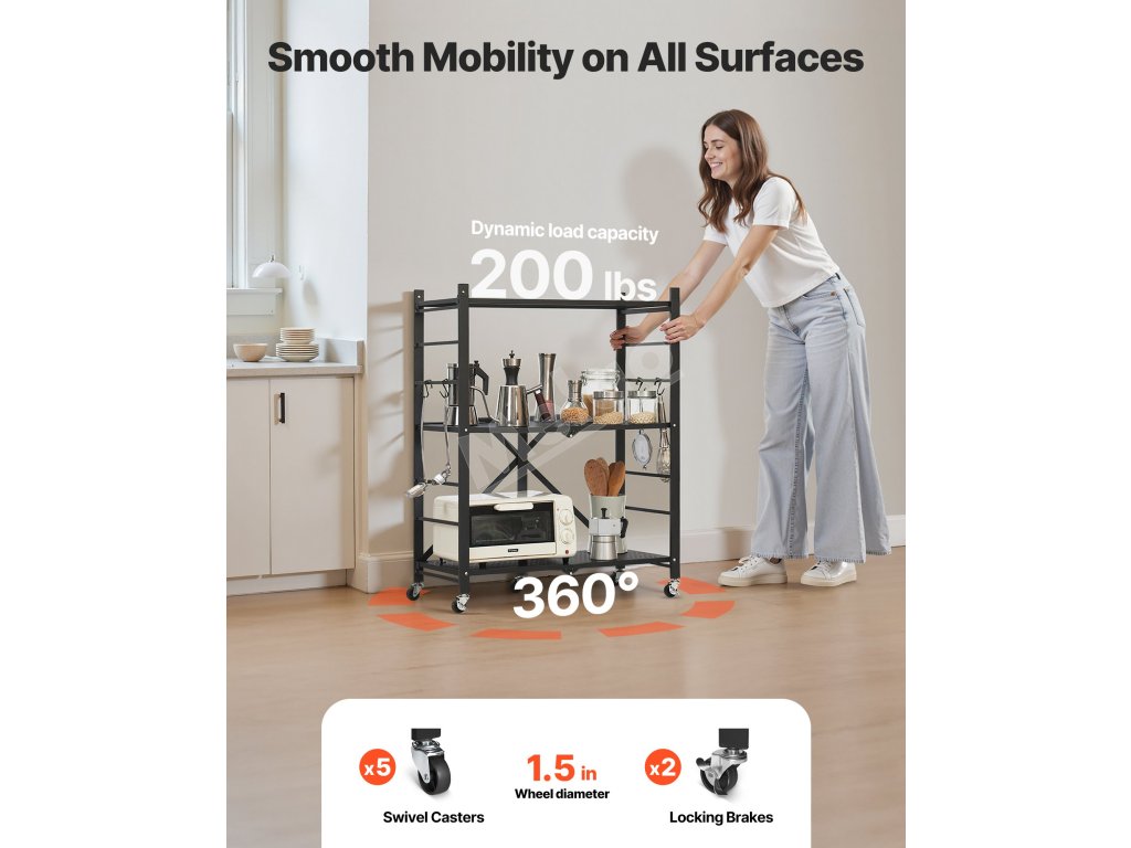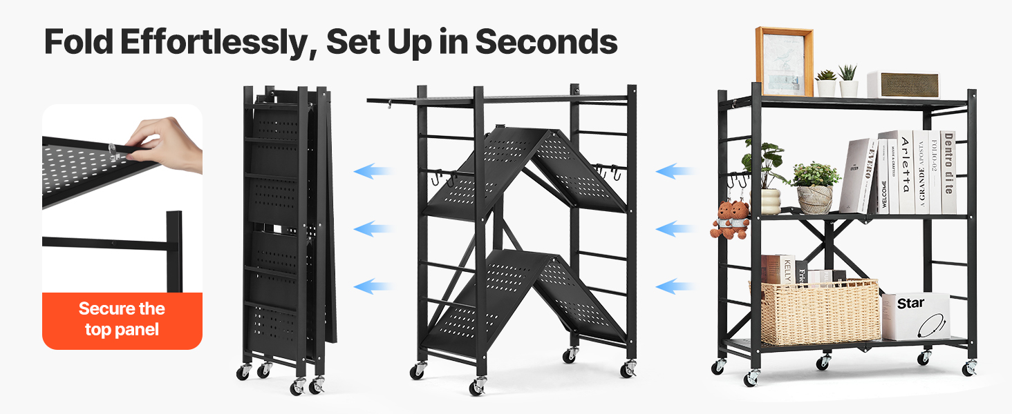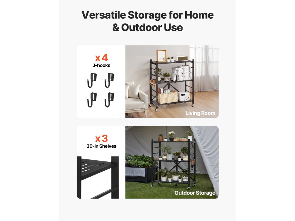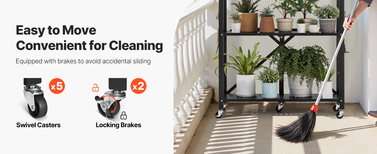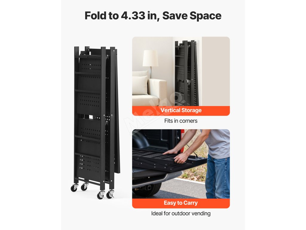 Tento viacvrstvový skladací regál uľahčuje organizáciu! Vďaka otočným kolieskam sa hladko pohybuje v interiéri aj exteriéri. Keď sa nepoužíva, stačí ju zložiť a ušetriť miesto. Ideálny na domáce skladovanie!