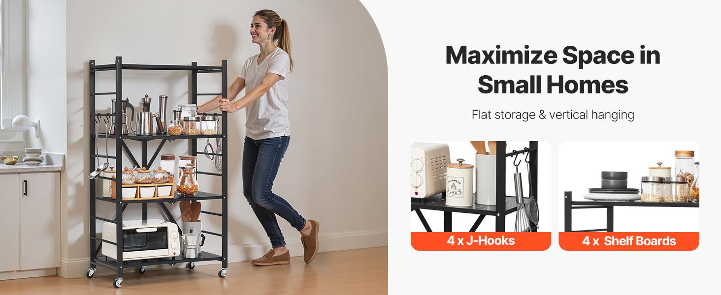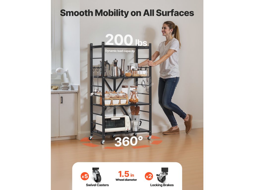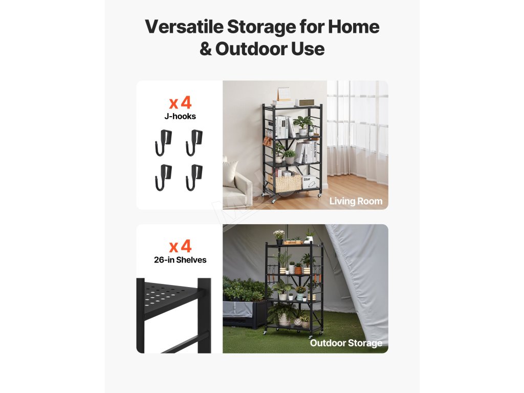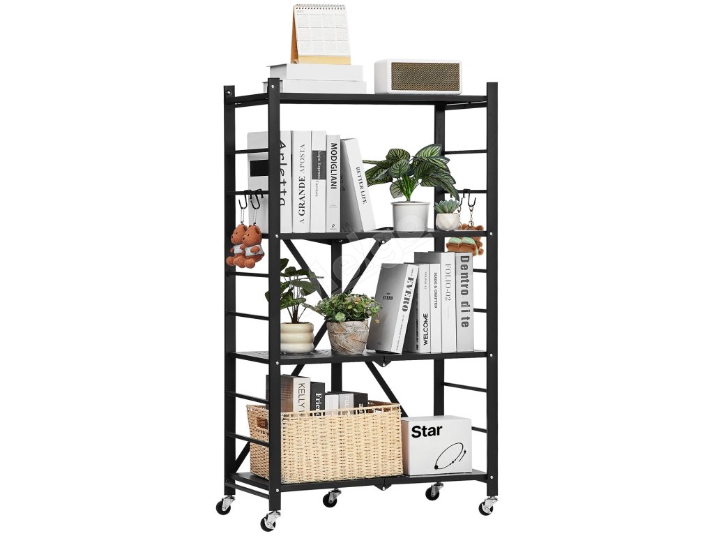 Tento viacvrstvový skladací regál uľahčuje organizáciu! Vďaka otočným kolieskam sa hladko pohybuje v interiéri aj exteriéri. Keď sa nepoužíva, stačí ju zložiť a ušetriť miesto. Ideálny na domáce skladovanie!