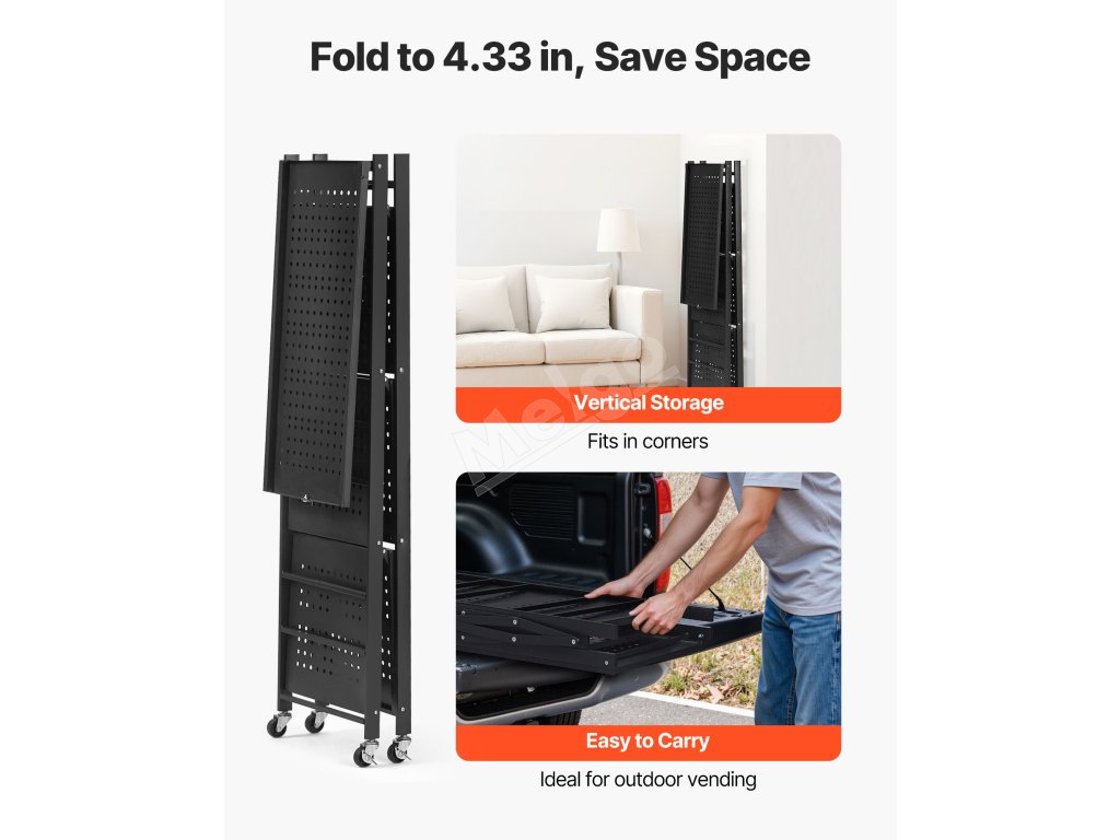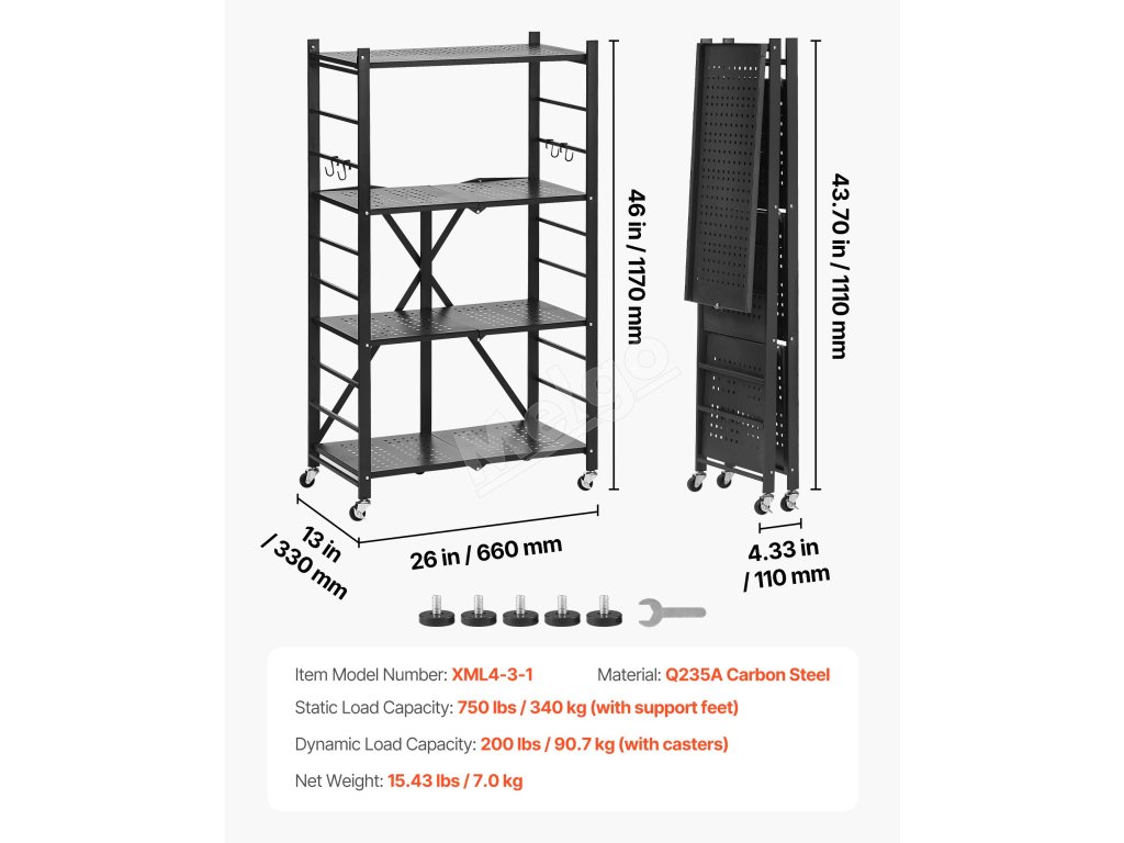 Tento skladací regál vyrobený z uhlíkovej ocele Q235A unesie až 750 kg s kolieskami a 200 kg v režime oporných nožičiek. Vymeniteľné nožičky a kolieska vám poskytujú odolnosť a všestrannosť!
