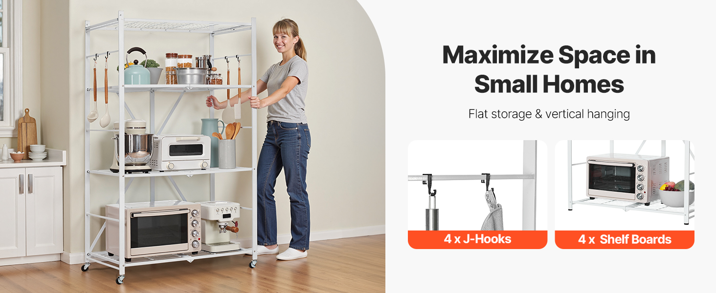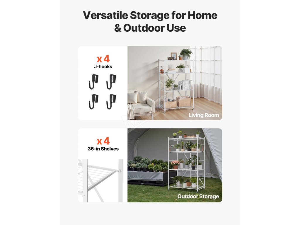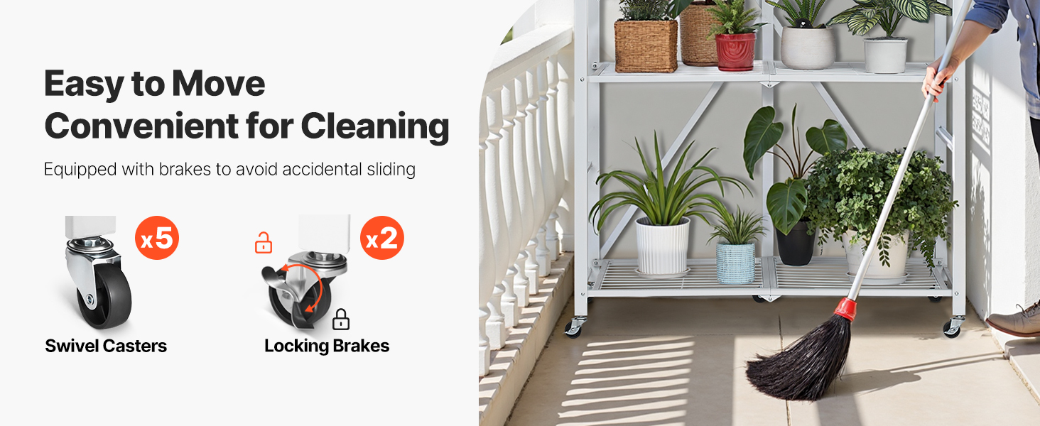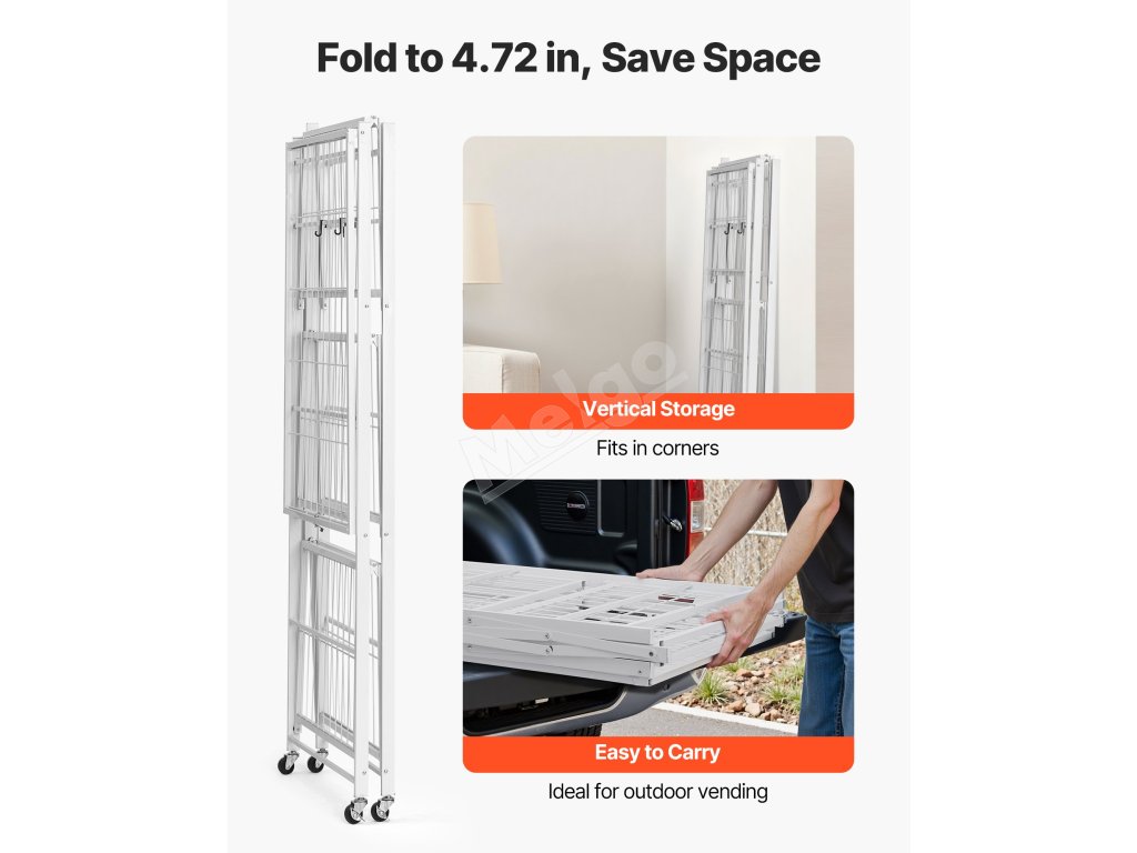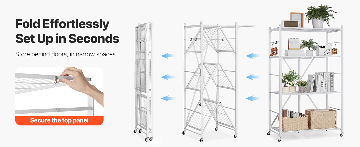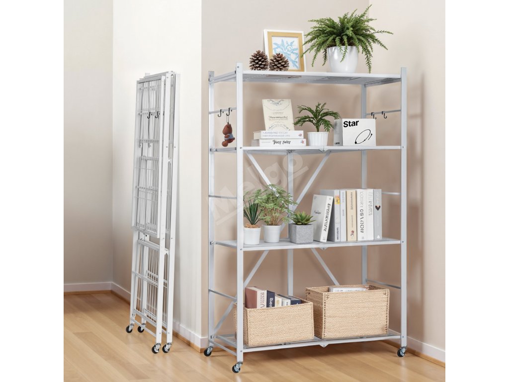 Tento viacvrstvový skladací regál uľahčuje organizáciu! Vďaka otočným kolieskam sa hladko pohybuje v interiéri aj exteriéri. Keď sa nepoužíva, stačí ju zložiť a ušetriť miesto. Ideálny na domáce skladovanie!