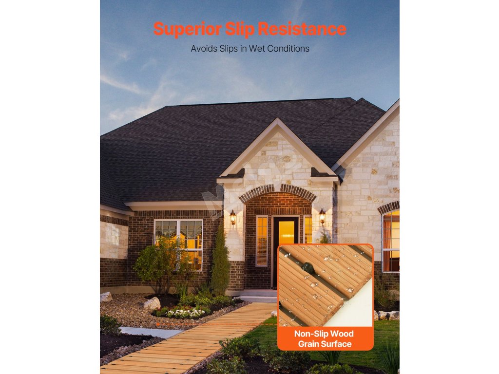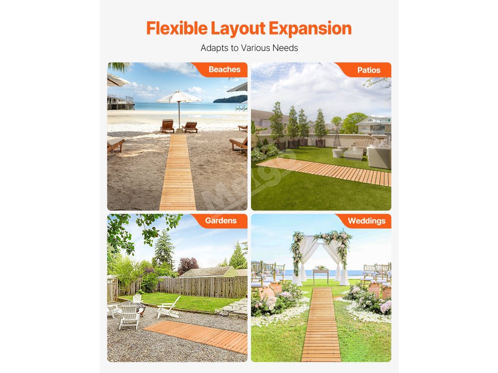 Či už na pláži, v snehu alebo pozdĺž štrkovej cesty, tento drevený záhradný chodník sa bez námahy prispôsobí a poskytne stabilný a atraktívny povrch na chôdzu.