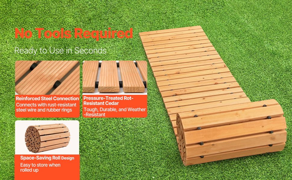 Tento drevený záhradný chodník je krásny a praktický, zabraňuje vzniku blata a zároveň poskytuje stabilitu. Je vyrobený z tlakovo ošetreného cédra a má protišmykovú konštrukciu na zaistenie bezpečnosti. Je ideálny pre záhrady, terasy a zhromaždenia, ľahko sa skladuje a je ideálny pre rôzne vonkajšie prostredie.