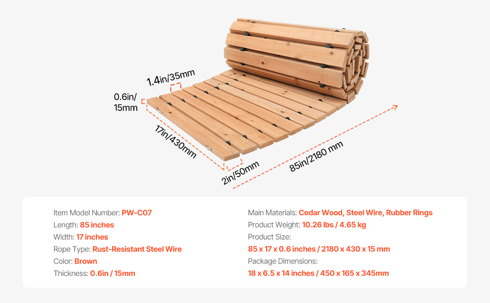 Rolovací cédrový chodník 7 ft × 17 in, protišmyk, s lanovým spojom