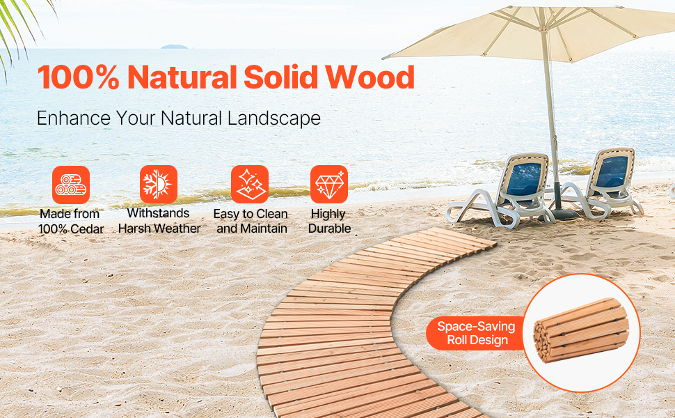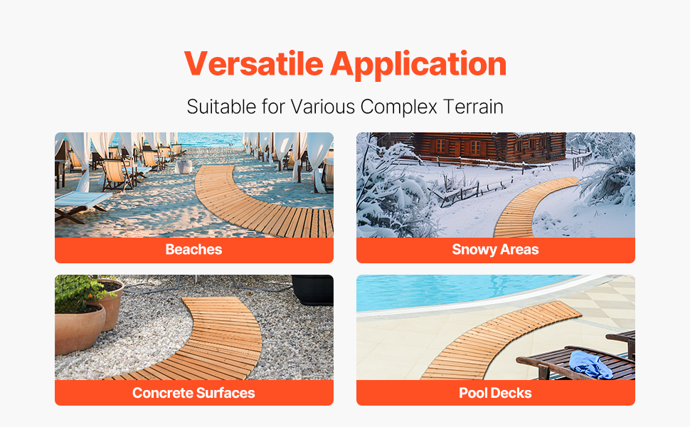 Či už na pláži, v snehu alebo pozdĺž štrkovej cesty, tento drevený záhradný chodník sa bez námahy prispôsobí a poskytne stabilný a atraktívny povrch na chôdzu.