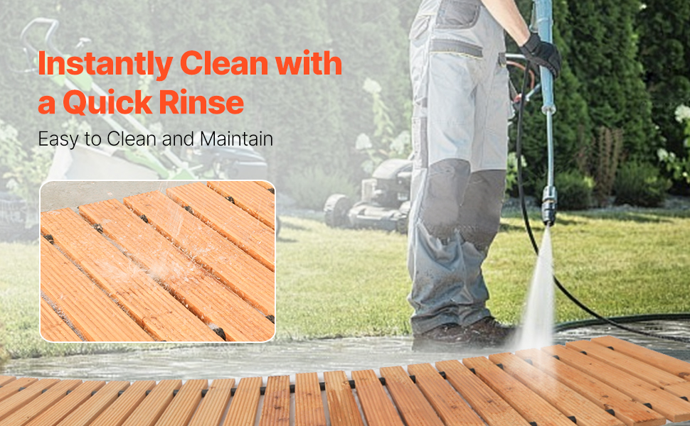 Tento drevený záhradný chodník stačí len rýchlo opláchnuť a bez námahy sa čistí, nevyžaduje si žiadnu zložitú údržbu, aby váš dvor vyzeral stále sviežo a ako nový.